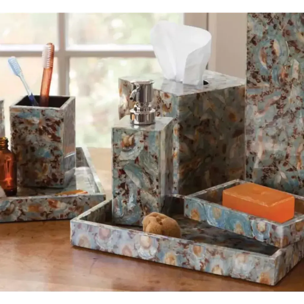 Our Sitges collection is a statement in seaside sophistication. The blues, browns, and grays of hand placed limpet shell creates an abstract pattern for bath accessories with extra-special pop. The designers at Pigeon & Poodle believe the details of a home are just as important as the furniture. A gorgeous toothbrush holder or handcrafted canister can elevate an entire bath, the perfect frame can heighten the feel of a whole space, and a good-looking storage basket can be your look’s missing link. With thoughtful design and top-notch craftsmanship, Pigeon & Poodle create home accessories with the care and attention typically reserved for larger pieces of décor.