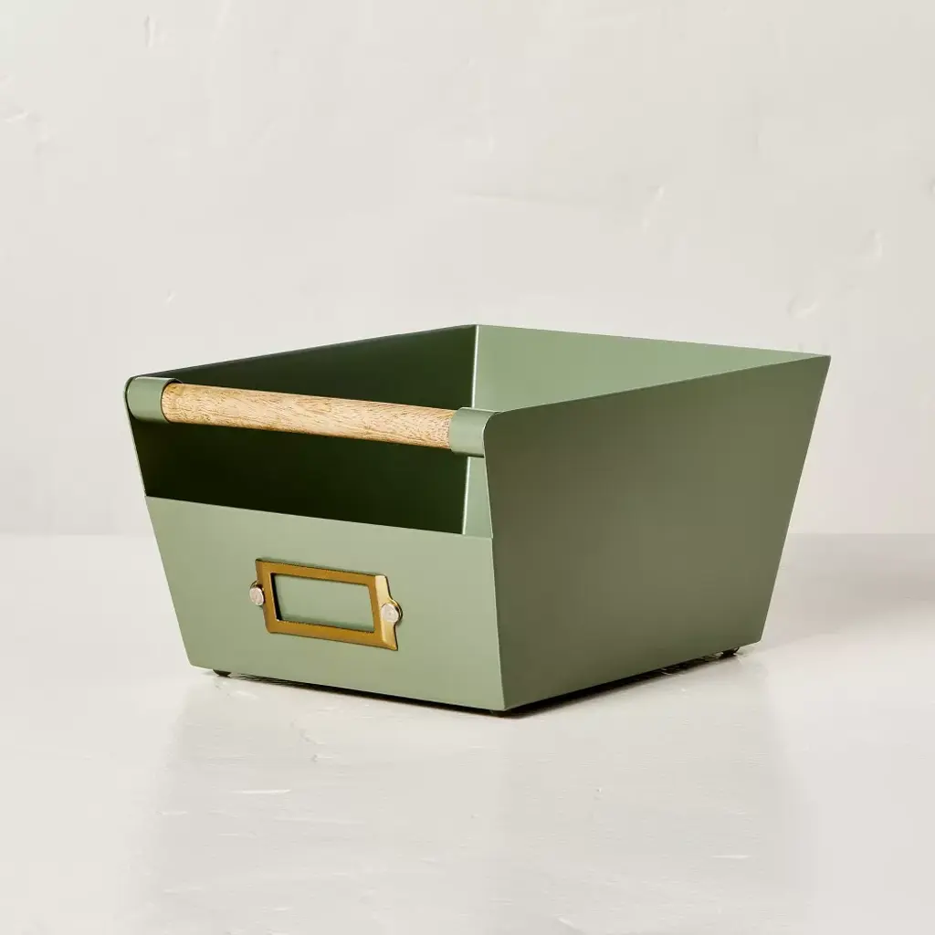 Small 5"x7" Metal & Wood Potting Bench Storage Bin Green - Hearth & Hand™ with Magnolia