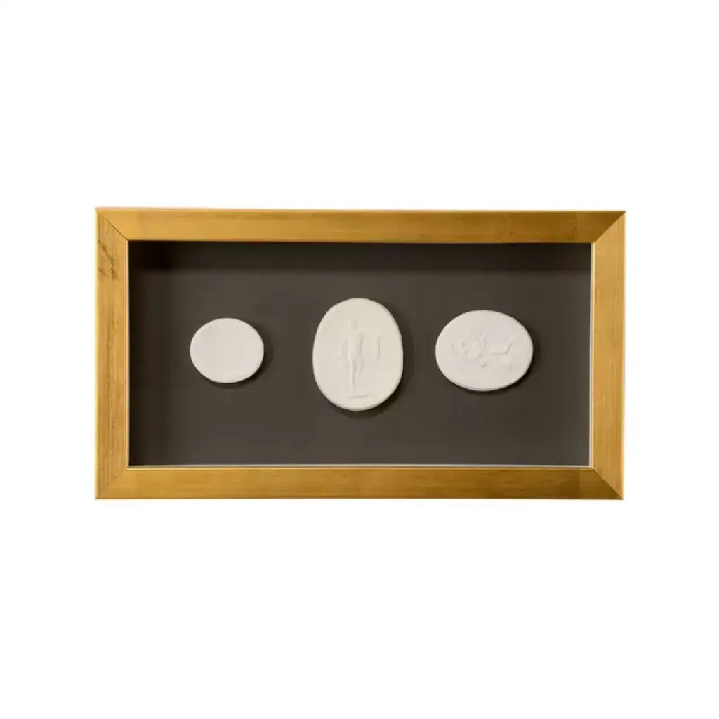 Mounted In A Contemporary Gold Leaf Shadow Box Frame.
