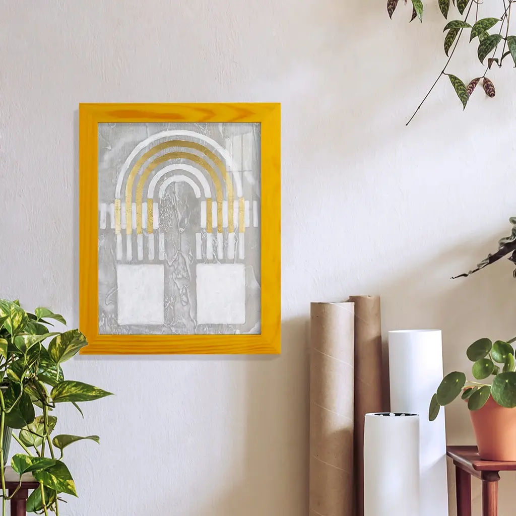 Mounted In Contemporary Gold Leaf Shadow Box Frame.