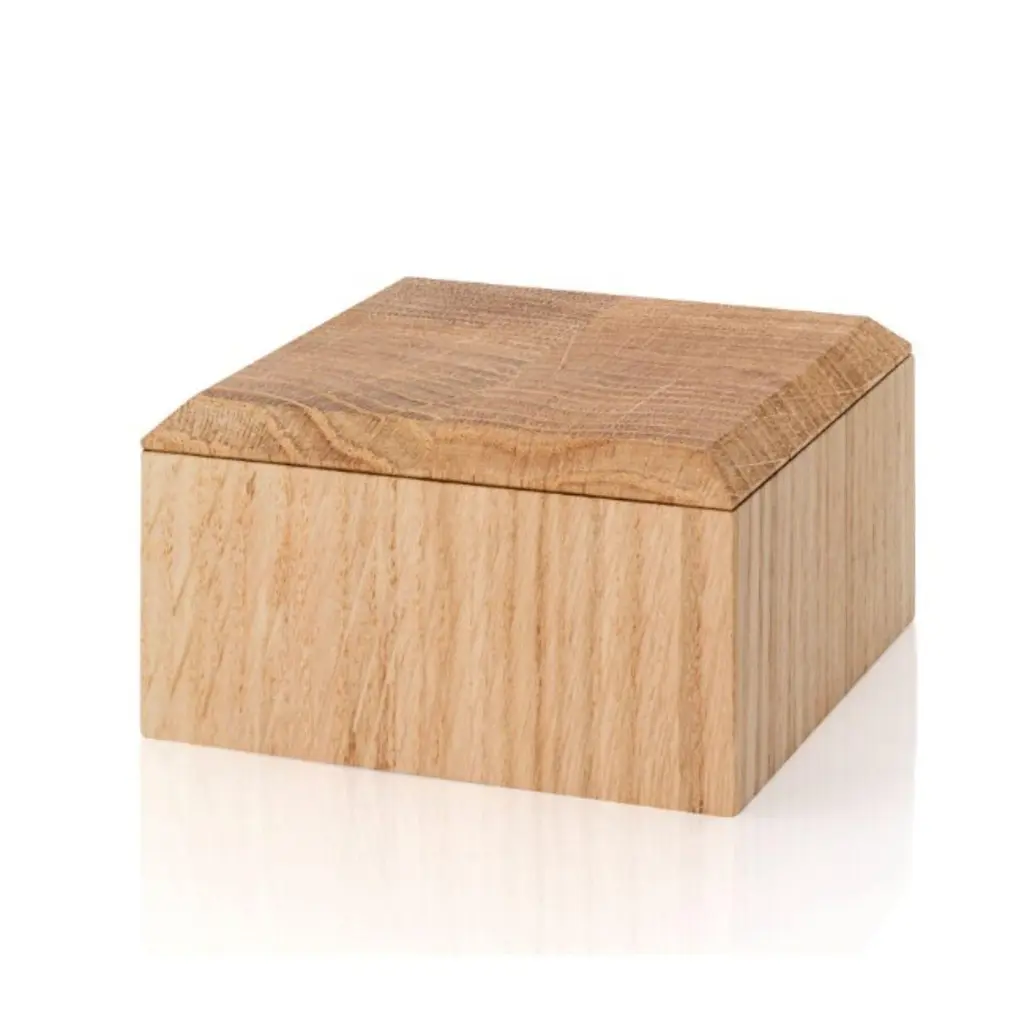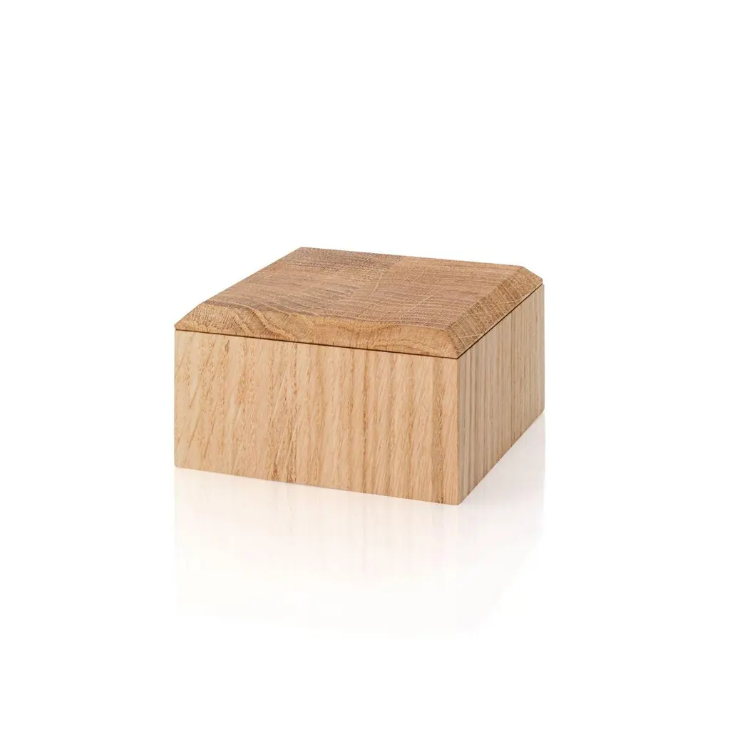 Small Pino boxes by Antrei Hartikainen.Materials: Oak, natural oil wax.Dimensions: W 18 / 14, D 9, H 5 / 7cm.A set of three vertical and two horizontal stacking boxes constructed of vividly grained woods. The pino boxes may be arranged in various combinations and used to store smaller items. They are also suitable for storing tea, coffee, condiments, etc.Antrei Hartikainen is a master cabinetmaker and designer from finland known for his exquisite works in wood. The award- winning pieces, including functional products and pure art works, achieve heights of sensuality, elegance and craftsmanship. These important factors are emphasized in Antrei Hartikainen’s work, which constantly seeks to challenge and blur the traditional categorizations between functional objects and visual arts. Hartikainen’s sculptural approach can be studied through his organic body of work, which simultaneously highlights the inspiration drawn from his material of choice, wood. Antrei hartikainen has shown his works in numerous solo and group exhibitions all over the world . Antrei have been awarded with prize as a Young Designer of the Year 2018 in Finland and shortlisted as Emerging Designer of the Year 2019 by Dezeen awards.