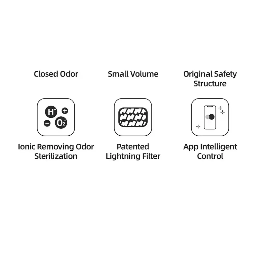 Big Volume and Saving Space1.Only 0.13 cubic save express cost2. Large Space 65L for Cat LitteringCompare to other litter box much more smarter1.Fashionable Design with digital touching control.2.Much more lighter compare to other litter boxUnique StructureLitter trash bag concealed inside the box which seems being smarter and fashionable.Automatic CleaningOne time processing for cat litter only cost 2.5 mins.