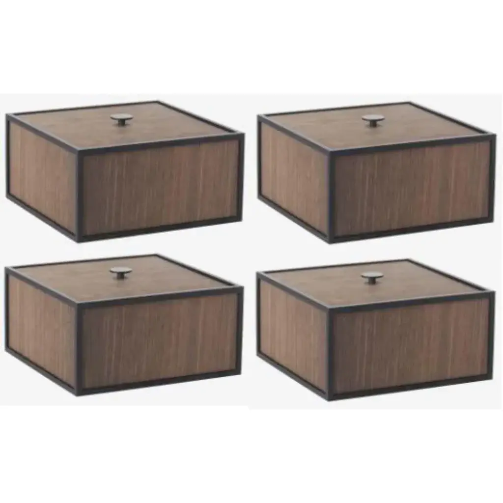 Set of 4 smoked oak frame 20 box by Lassen Dimensions: d 20 x w 20 x h 10 cm Materials: Melamin, Melamine, Metal, Veneer Weight: 2.00 Kg Frame box is a square box in a cubistic shape. The simple boxes are inspired by the Kubus candleholder by Mogens Lassen, that are based on strict mathematical formulas and designed with the greatest precision.