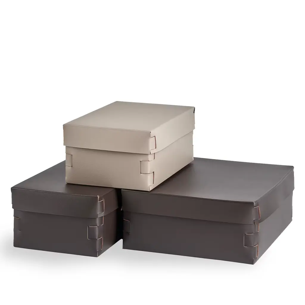 Elegant cappuccino box, specifically designed by Ekaterina Borovkova to fit seamlessly into standard-size closets. These versatile storage solutions are perfect for organizing a variety of items, including footwear, clothing, sports equipment, and more. It is available in customizable sizes, please contact the concierge for more information.