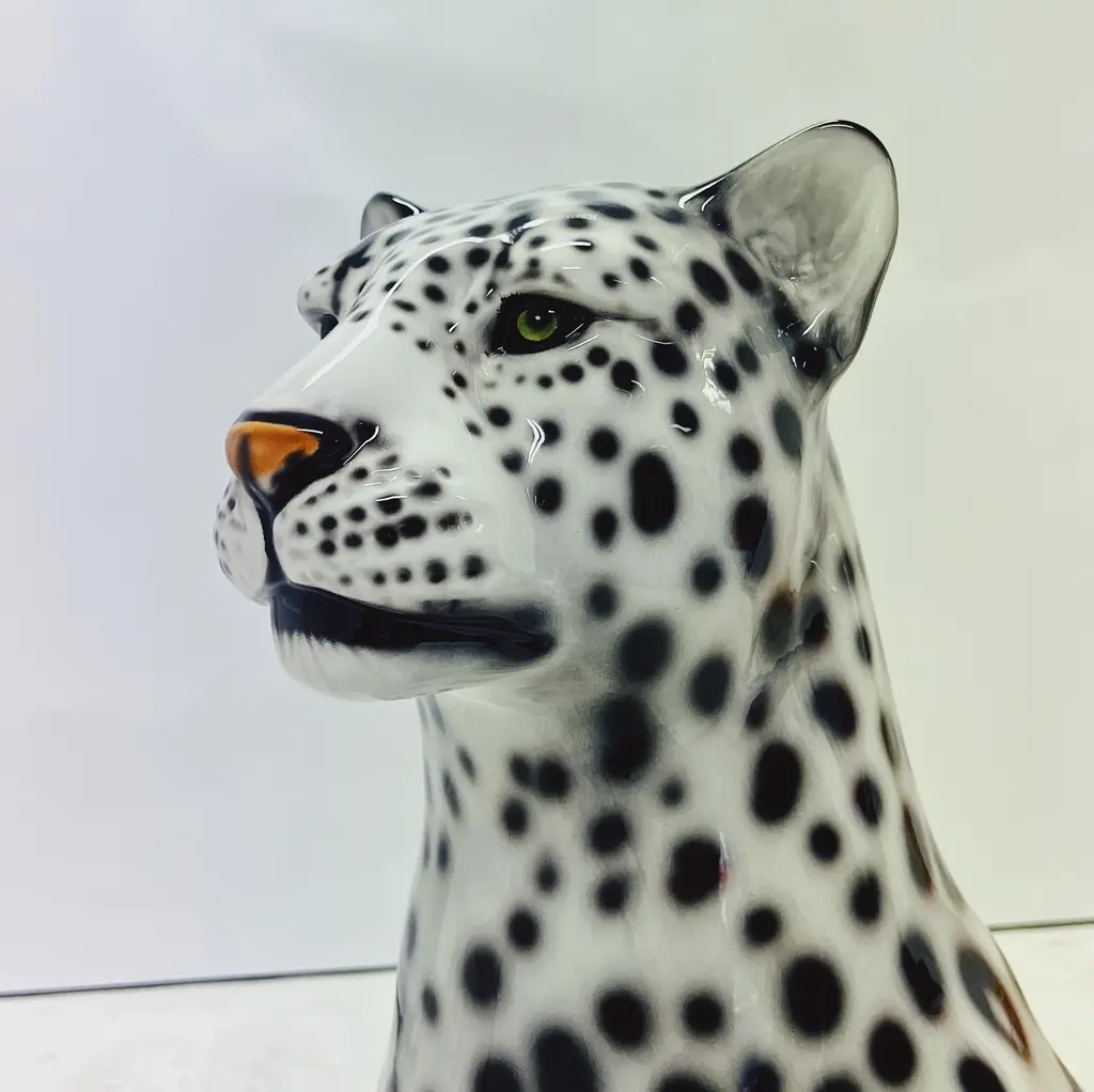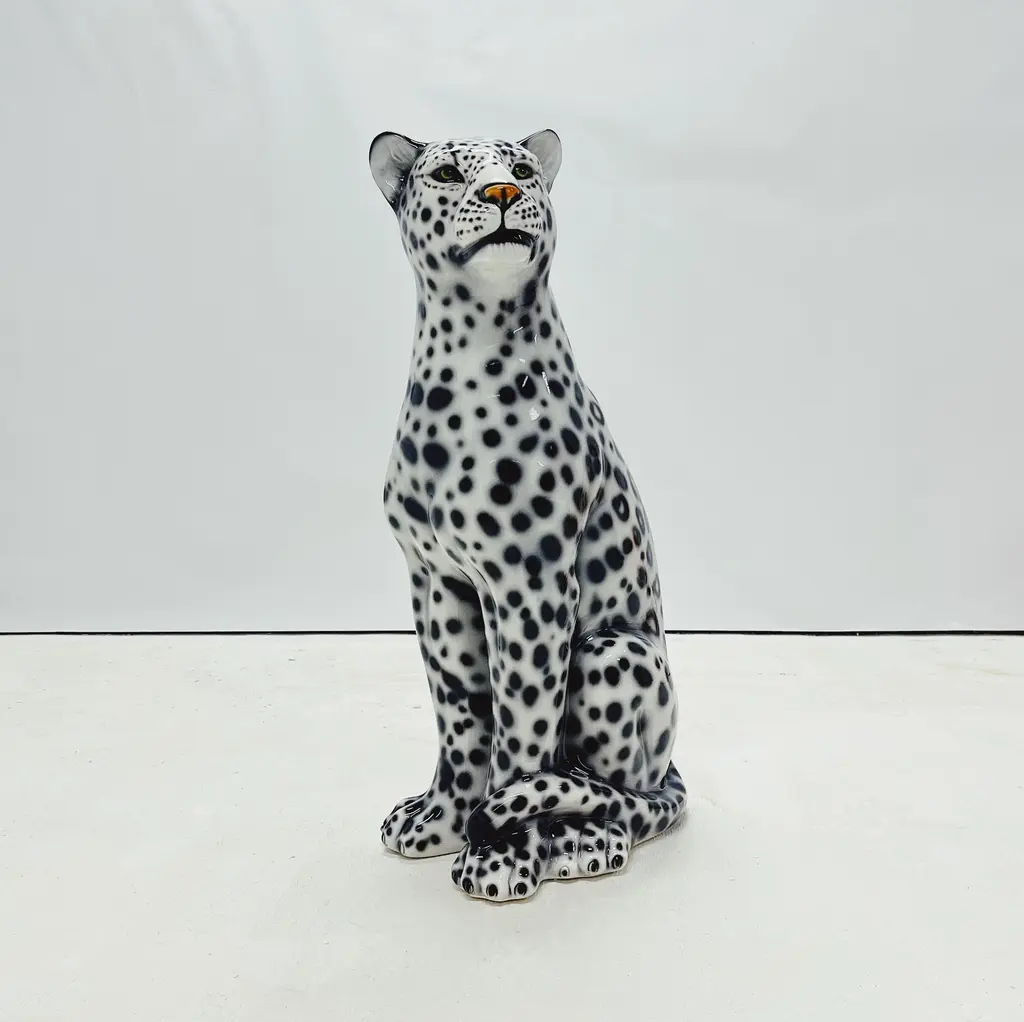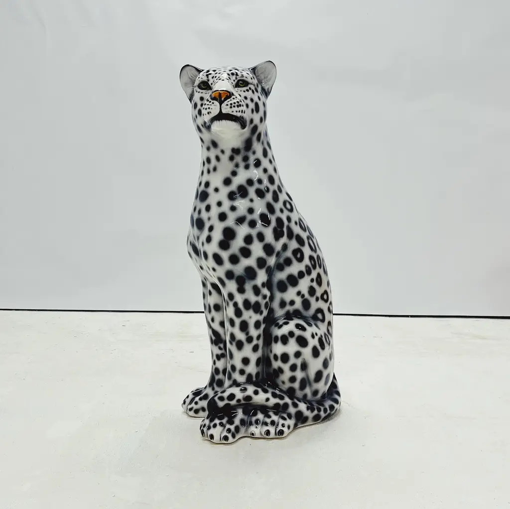 Unique handmade statue of a snow leopard. This Hollywood Regency statue, crafted from hand-painted ceramic and made in Italy, will undoubtedly add a stunning and sturdy look to your interior! All statues come directly from a family business in Northern Italy that has specialized in high-quality ceramic statues since 1985. Everything is made by hand, making each image unique. There are different types and sizes available, and customization is also possible. Dimensions Height: 89cm Width: 33cm Depth: 42cm Stamped by Maker