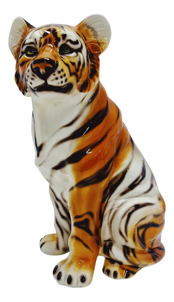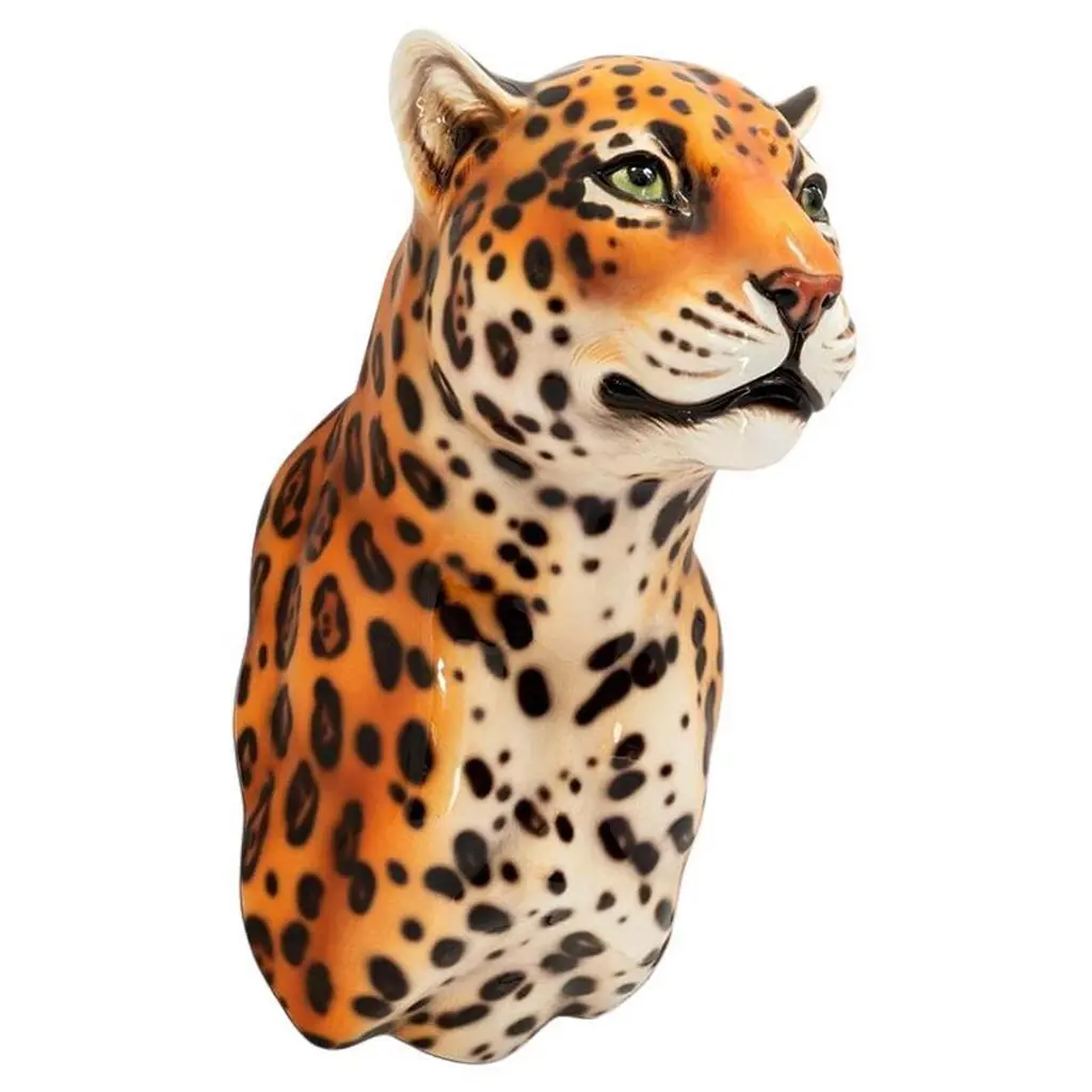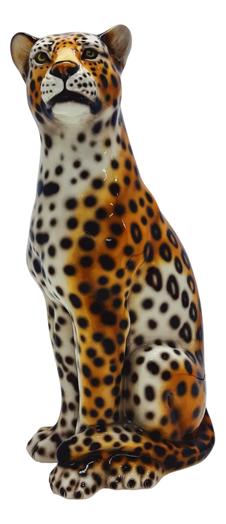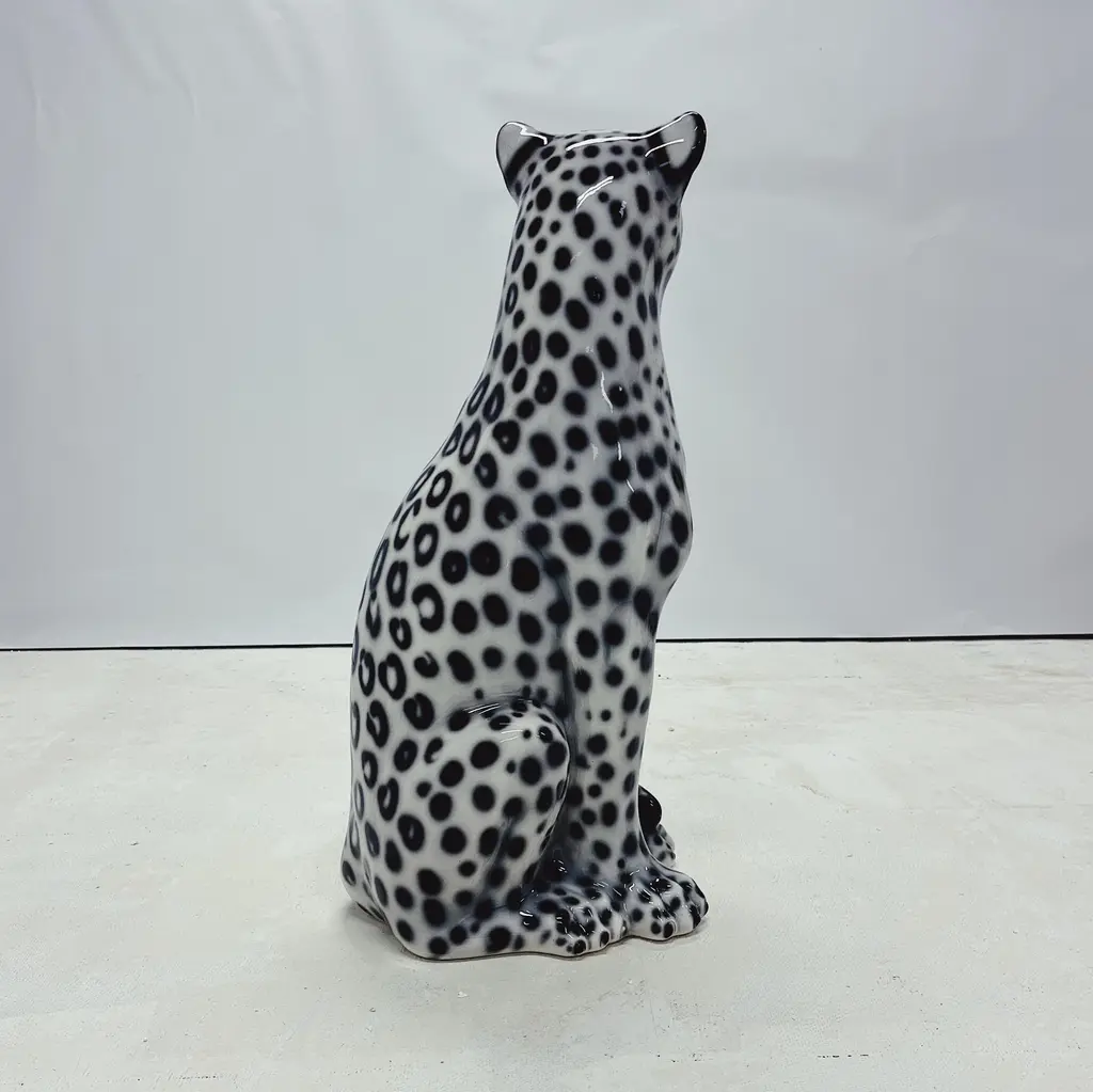 Unique handmade statue of a snow leopard. This Hollywood Regency statue, crafted from hand-painted ceramic and made in Italy, will undoubtedly add a stunning and sturdy look to your interior! All statues come directly from a family business in Northern Italy that has specialized in high-quality ceramic statues since 1985. Everything is made by hand, making each image unique. There are different types and sizes available, and customization is also possible. Dimensions Height: 89cm Width: 33cm Depth: 42cm Stamped by Maker