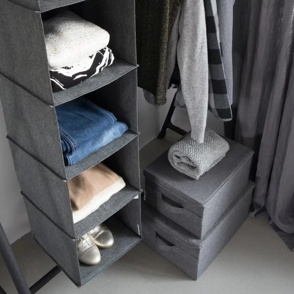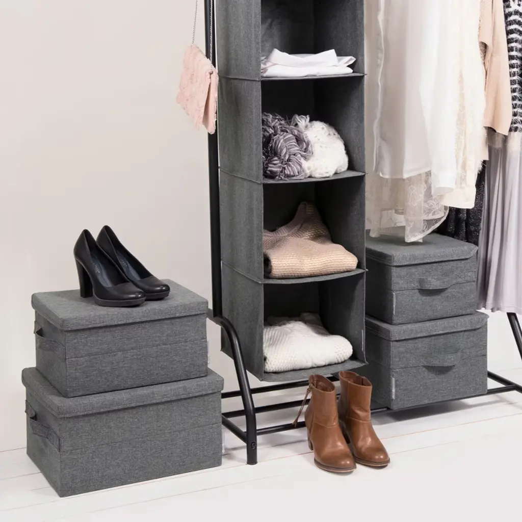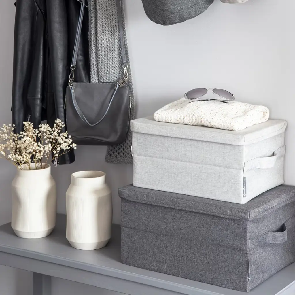 Bigso’s Soft Foldable Polyester Storage Box with a Lid is made to tidy up your house! The stylish look combined with the versatile organizational options make these the perfect storage solutions. The 11.8 in x 15.7 in x 8.7 in size allows you to store many things including pillows, kid’s toys, and clothes. These fabric baskets for storage have handles for easy carrying between rooms and fold flat when not in use.