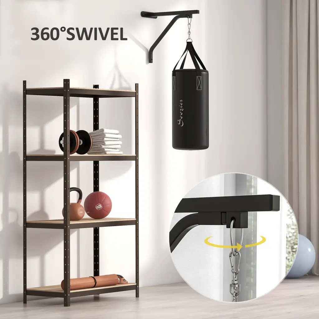 Soozier Unfilled Punching Bag Hanger, Heavy Bag Wall Mount Set With Bracket, Boxing Gloves, Hand Wraps And Swivel Hook - Black