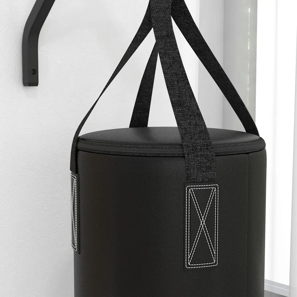 Descriptions:Hit hard and train like a champ with Soozier's complete heavy bag hanger set. Whether you're into muay thai, kickboxing or karate, our wall mounted punching bag can handle it. It comes with a strong steel bracket and swivel hook for fluid movement. Fill your boxing bag with cloth or sand to adjust your training level. Training at home tends to take a lot of pieces. With our set, you get boxing gloves and hand wraps so you can start right away. Score big with Soozier's boxing bag hanger set.Features:● Fill the punch bag with sand, cloth, or foam for customization● It comes with hand wraps and punching gloves for immediate use● Heavy-duty steel construction provides lasting durability● Features 360° swivel hook for versatile movement● Suitable for installation on concrete, brick, and solid wallsSpecification:● Color: Black● Materials: Steel, Faux Leather (PU)● Punch Bag Dimensions: Dia. 11.8" x 35.4"H● Bracket Dimensions: 16.9" L x 7.9" W x 14.6" H● Mounting Hole Spacing: 6.3" L x 13" W● Weight Capacity: 132 lbs.● Item Label: A91-350V00BK
