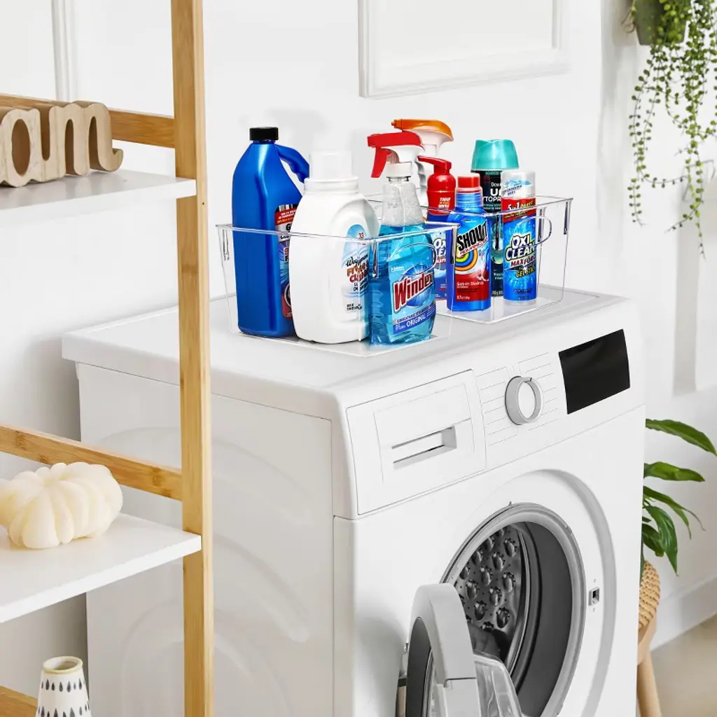 Sorbus 8 Pack Medium Clear Plastic Storage Bins, Clear Organizer Bins With Handle For Cleaning Supplies, Under Sink, Bathroom Organizers And Storage