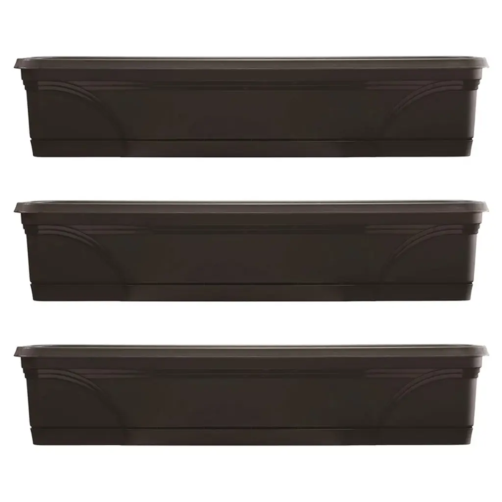 Add some greenery to the outside of your window with the Southern Patio 36 Inch Medallion Hanging Windowsill Garden Box Planter. This package includes windowsill planters. This 36-inch window planter is a great way to have a garden when you're cramped for space. Constructed of weather-resistant UV-protected resin, this window box is ready to make all of your greenery dreams come true - even when the weather gets extreme. The simple yet functional design of this box will complement your plants and make them the true center of attention. Thanks to drainage holes drilled into the bottom of this planter, you won't have to worry about excess water not draining out properly. Get ready to bring out your green thumb. It's gardening time with the Southern Patio Medallion Hanging Windowsill Garden Box Planter.