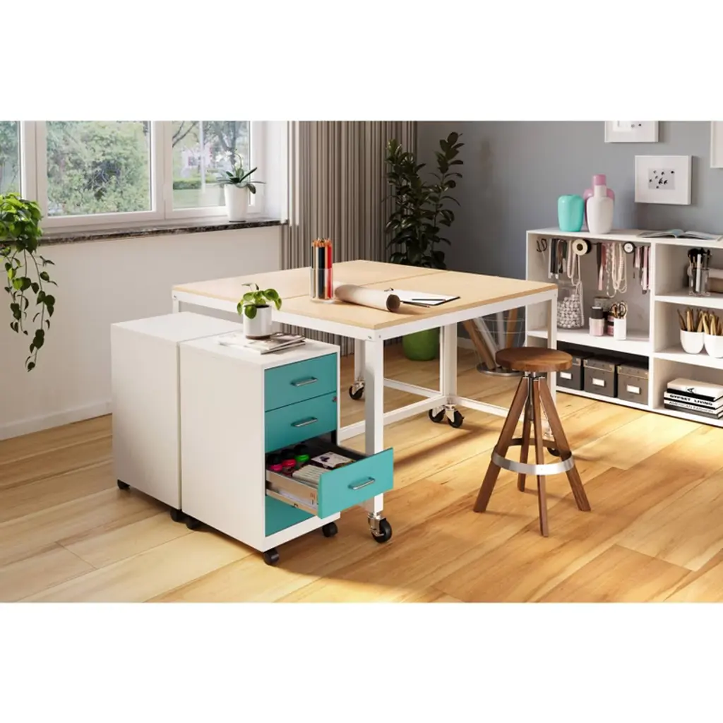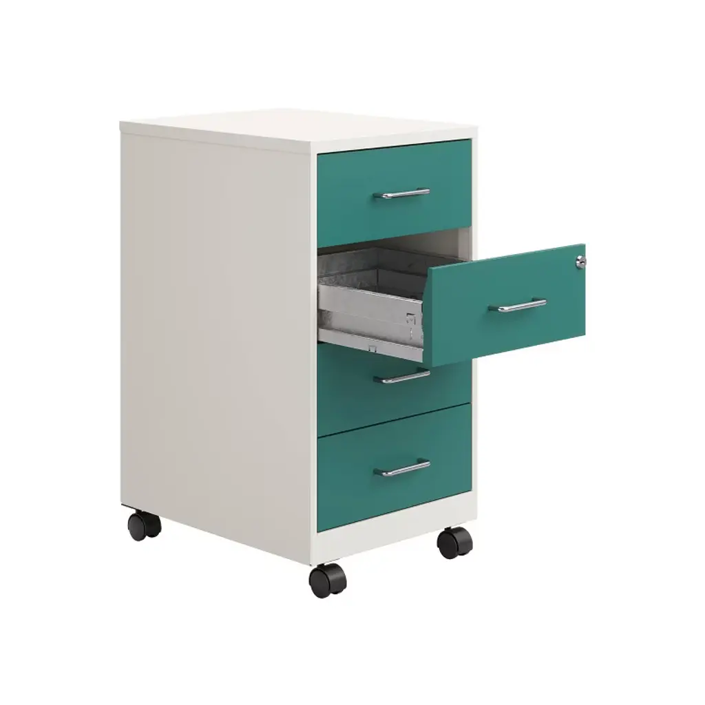 Space Solutions 18" Deep 4 Drawer Metal Mobile Organizer With 4 Box Drawers Locking Teal/pearl