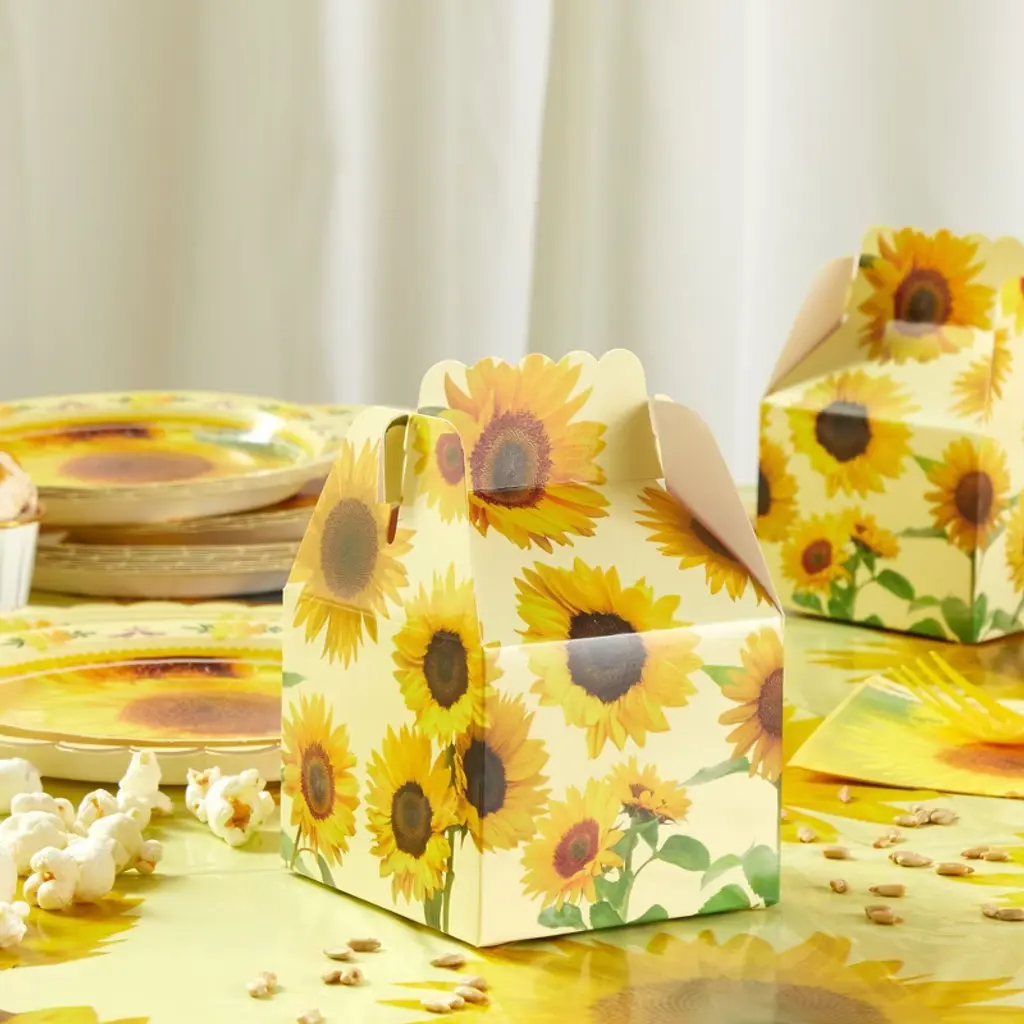 Sparkle And Bash 36 Pack Sunflower Party Favor Treat Gable Gift Boxes For Birthday, Baby Shower Decorations, 3.5 X 5 In