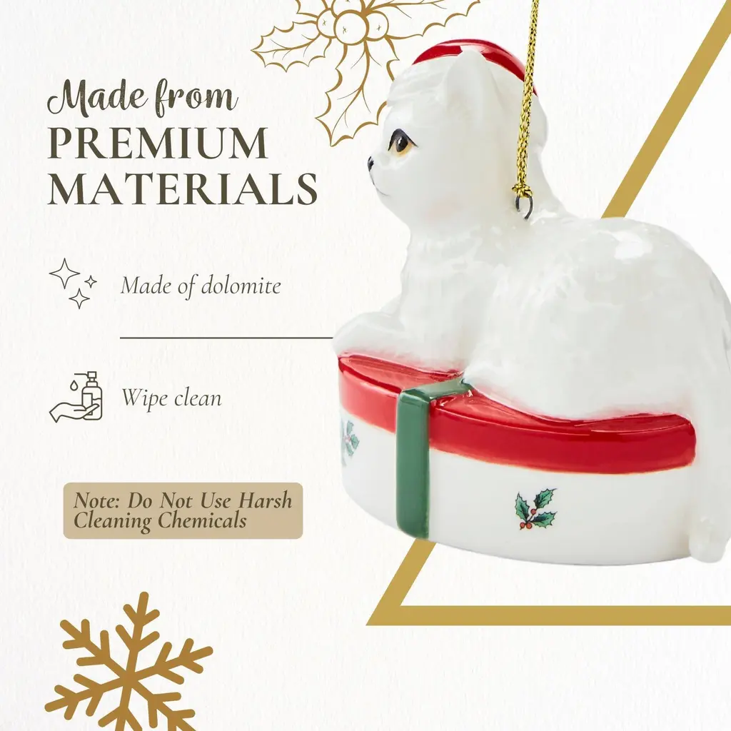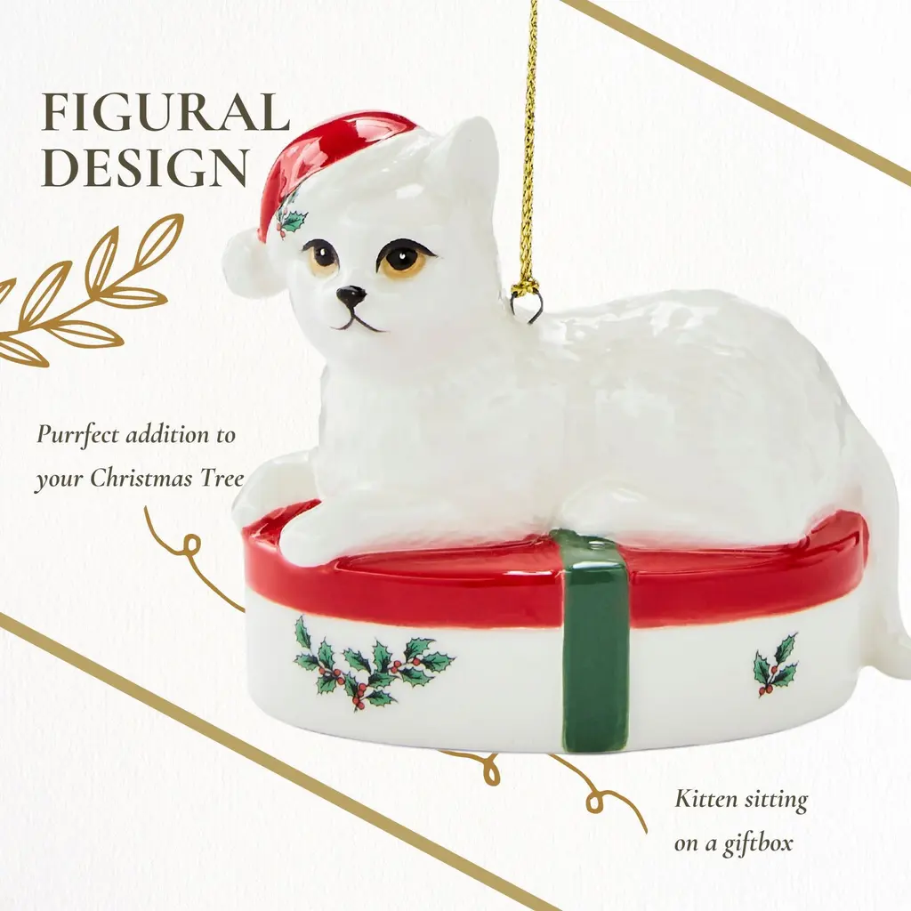 Spode Christmas Tree Kitten Ornament - Festive Holiday Decoration, Novelty Bauble for Seasonal Decor - Ideal Holiday Keepsake Ornament for Christmas - Collectible Ornament for Home Decoration - NewLoved for its nostalgia and warm recollections of Christmases past, Christmas Tree is one of the world's best known holiday designs since its introduction in 1938. Each season sees wonderful new introductions for collectors both old and new. Christmas Tree adds a distinctive charm to every table -- celebrating traditions and creating memories. Elevate your holiday gatherings with the Spode Christmas Tree Serving Tray featuring a delightful Christmas Tree Design. These charming trays are perfect for serving appetizers, canapes, and small desserts, adding a touch of festive spirit to your holiday table. The iconic Spode Christmas Tree design makes these trays a standout addition to your seasonal tableware. These versatile tray are not just for the holiday season. Their elegant design makes them suitable for various occasions, from festive gatherings to everyday use. Serve appetizers, desserts, or small bites at any celebration, and add a touch of sophistication to your table setting. The Spode Christmas Tree Giftbox Kitten Ornament makes a thoughtful and appreciated gift for friends and family. Its beautiful design and high-quality construction make it a perfect present for holiday occasions, housewarmings, or any special event. Share the joy of holiday dining with these charming and festive tray.FEATURES:COLOR:MATERIAL:WHAT'S IN THE BOX:PACKAGING:Retail Packaging