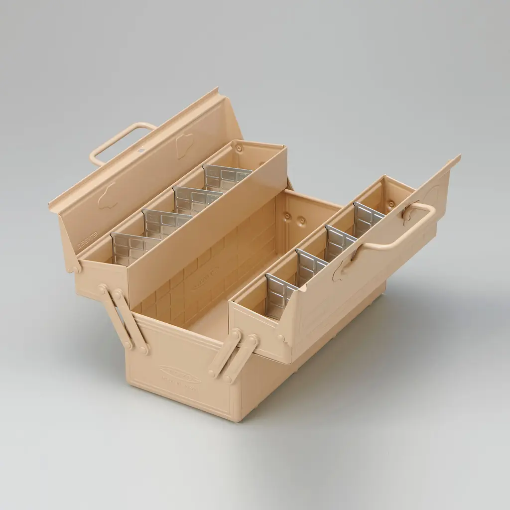 Crafted in Japan since 1969, Toyo Steel offers the ST-350 Steel Tool Box, ready to hold anything and everything. Using their own technology, Toyo Steel created a toolbox from a singular piece of steel resulting in no sharp corners and a sleek design for ultimate protection and storage. Featuring a cantilevered lid, this toolbox offers two upper storage trays with a total of ten storage compartments, and a hole conveniently placed for a padlock to keep items safe and secure. Highlights