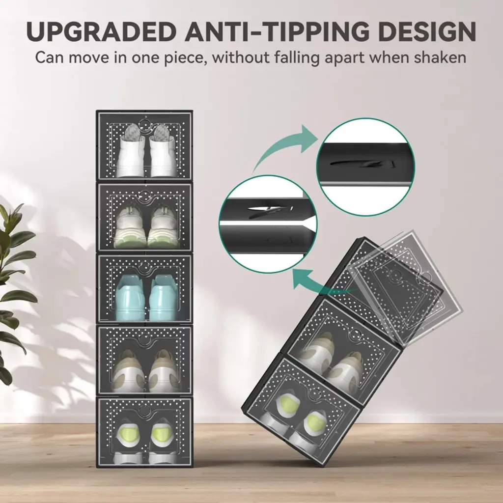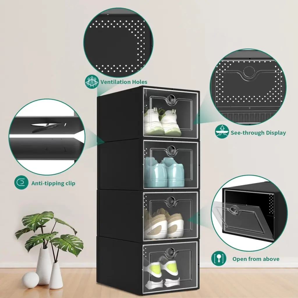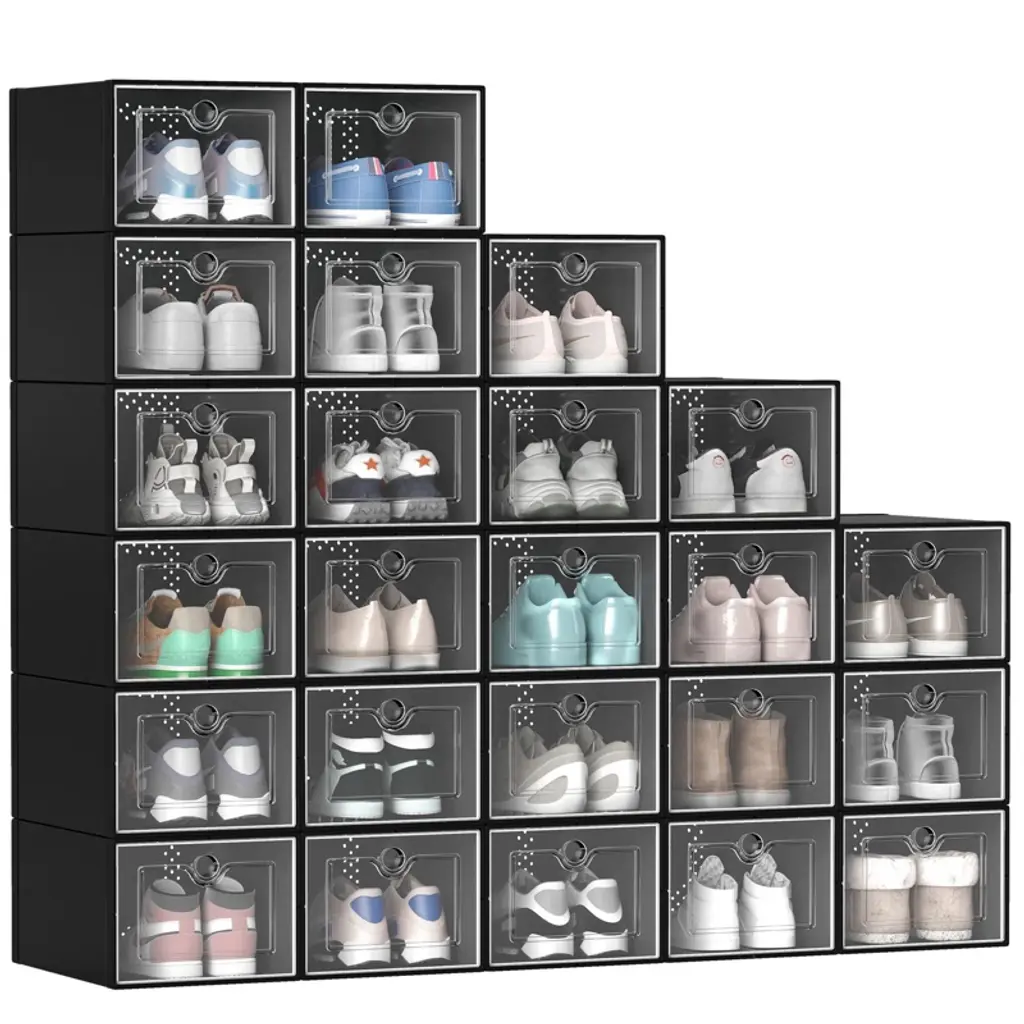 Stackable Storage Boxes, 24 Pcs Organizers And Drawers For Shoes Black For Entryway