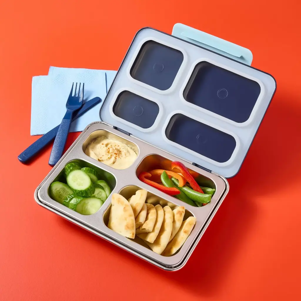 Enjoy a variety of foods while on the go with the Stainless Steel Bento Box from Cat & Jack™. This bento box is designed in a rectangle shape with multiple divided compartments to help store different foods while keeping them separated. The leakproof design helps prevent messes and spills, while the latch closure helps keep the contents secure. Made of stainless steel, this BPA-free bento box is also dishwasher safe for easy cleanup after use. Cat & Jack™: Designed for all children so you can trust it's made for yours.