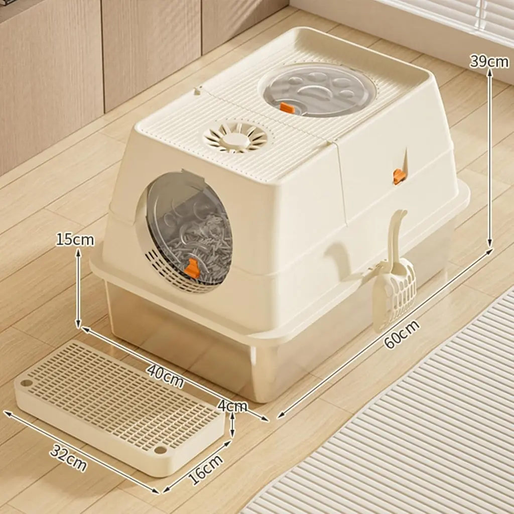 Spacious Design for All Cats: Our large cat litter box offers generous space to accommodate cats of all breeds and sizes, featuring an inner capacity of approximately 30 liters. Stainless Steel Waste Tray: Constructed from premium stainless steel, the included garbage tray with a lid is rustproof, scratch-resistant, and built to withstand multiple factors, ensuring long-lasting durability. Hassle-Free Cleaning: With its smooth surface, this litter box allows for easy cleaning, just rinse it out to maintain a hygienic environment for your furry companion. Clever Foot Pedal Mechanism: Designed with a foot pedal to minimize litter scattering, this feature keeps the surrounding area tidy and helps conserve waste usage. Practical Tool Storage: This litter box comes with a convenient garbage scoop holder, keeping your cleaning tools organized and easily accessible whenever you need them.