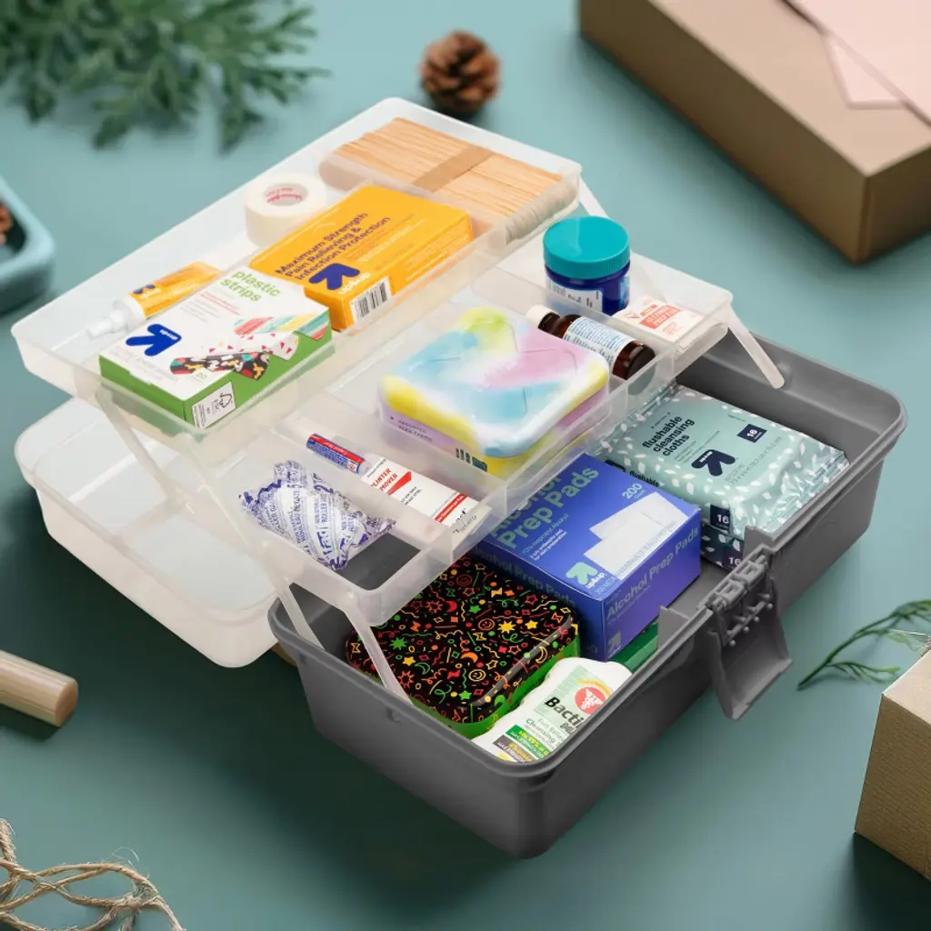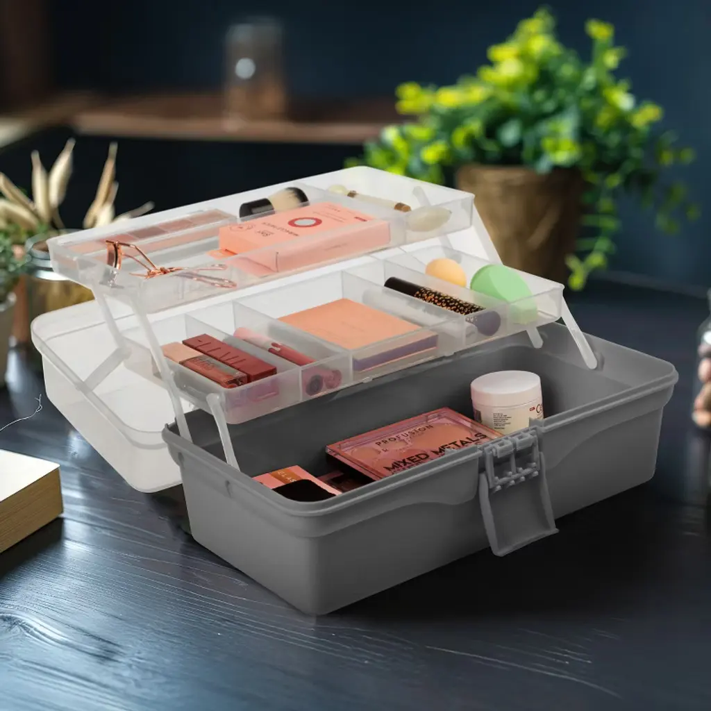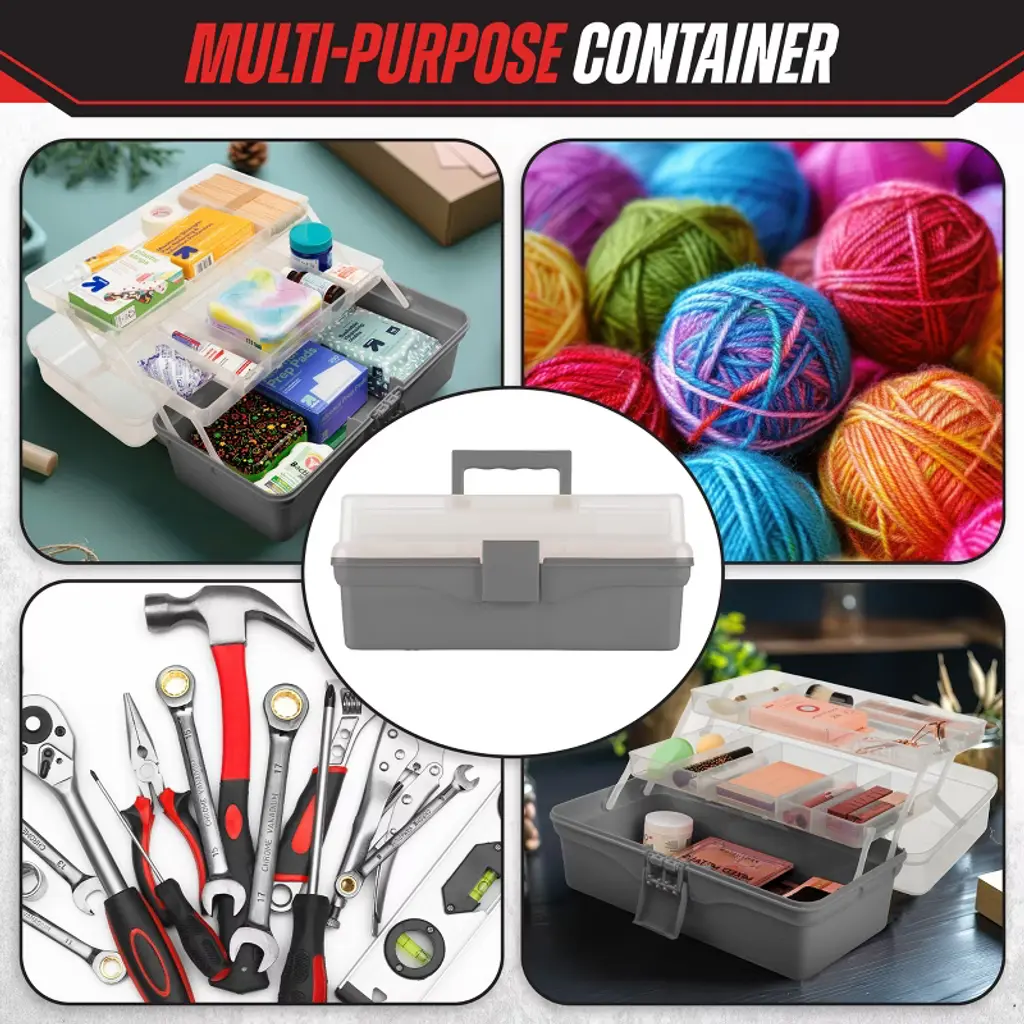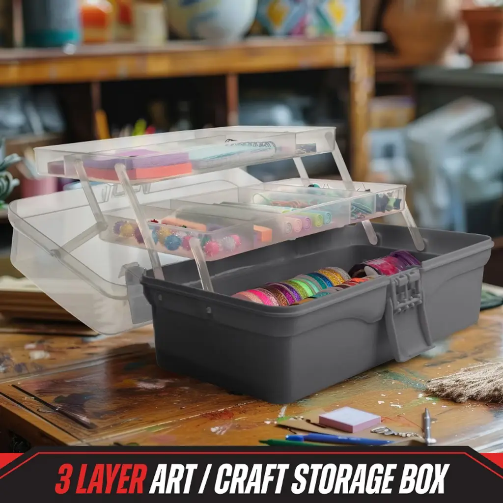 Tidily organize everything from art supplies to cosmetics or fishing tackle with the 3 Layer Plastic Tool Box with Handle by Stalwart. This multipurpose pink organizer features a clear lid that provides visibility to the contents and 2 tiers of trays that open widely for easy access, so you can always find and grab just what you need. The lid closes securely thanks to the sturdy latch and a built-in top handle allows you to take this portable craft organizer box on the go. Whether you use this plastic tool box as an art case, for cosmetics and beauty supplies, as a sewing box for sewing supplies, or any other hobby items, you’re sure to appreciate the sturdy construction and lightweight portability.