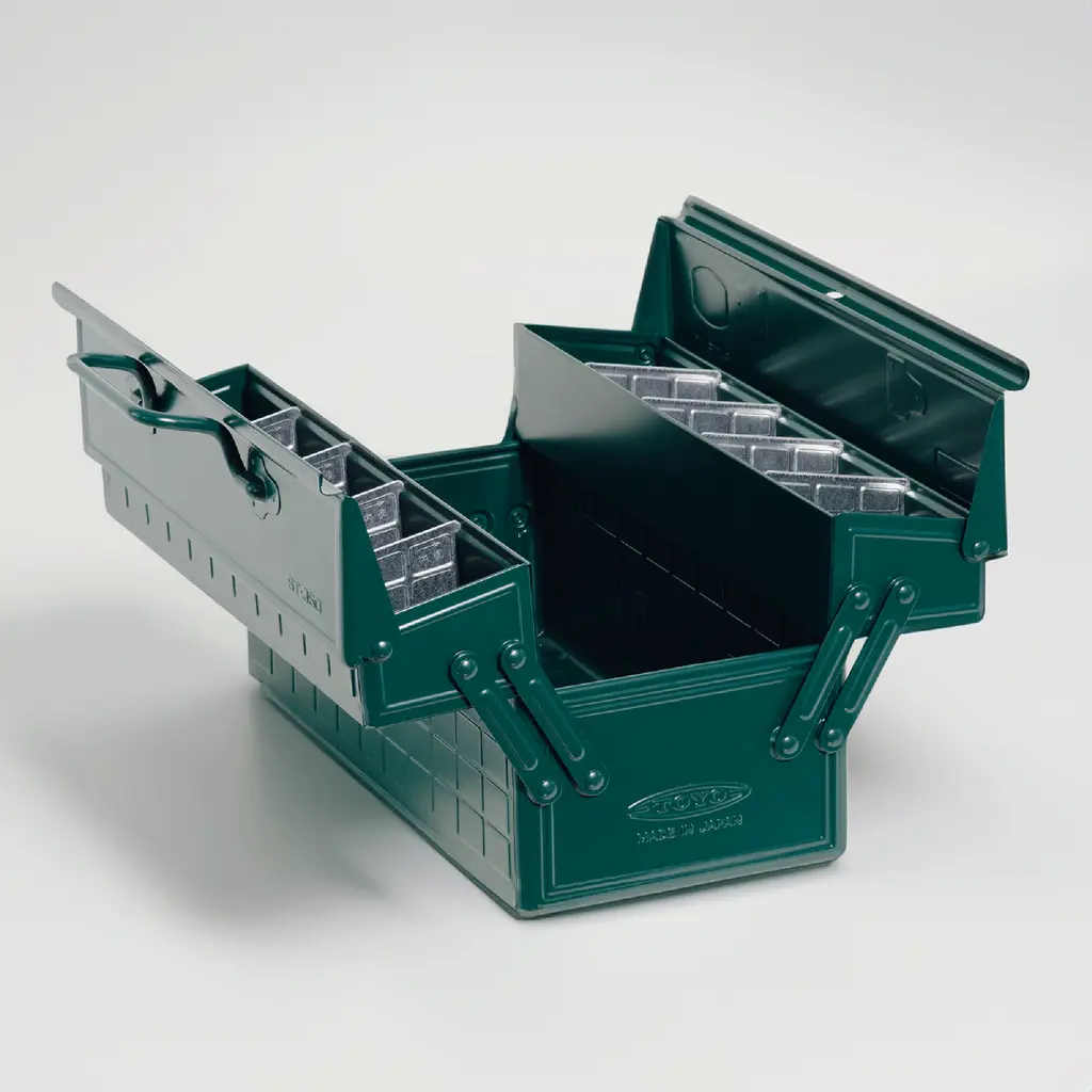 Even in the highly practical and multi-purpose Toyo Steel collection of metal cases, the Cantilever Toolbox ST-350 stands out with a design that maximizes function. Meaning? You’ll never need another toolbox ever again, as the ST-350 is crafted from steel with a versatile interior you can customize and a sturdy handle that provides space for a padlock. The cantilever lid opens on two sides, providing access to the main compartment and to two trays with removable and adjustable metal dividers. You can arrange the dividers to suit various needs, whether you want to organize small parts, nuts and bolts, beads for arts and crafts, medical supplies, and more. Plus, the Toyo Steel Cantilever Toolbox ST-350 looks extra-elegant with a modern pattern and a range of color options.