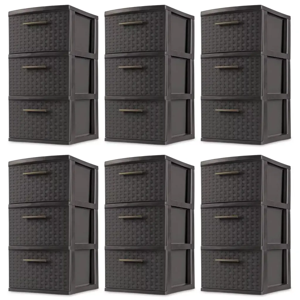 Sterilite 3 Drawer Storage Tower, Plastic Decorative Weave Organizer Drawers For Dorm, Closet, Bedroom, Or Craft Room Organization, 8 Pack, Espresso
