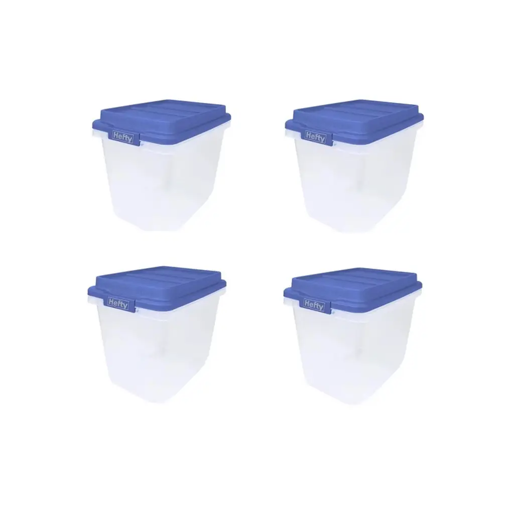 Get organized with the modern and versatile Sterilite Clear Storage Box line! The Sterilite 58 Quart Storage Boxes offer a 58 Qt size, making it a practical choice for a wide range of everyday household storage needs. Perfect for lightweight organization, these containers help keep your home, office, or dorm neat and clutter-free. The clear base allows you to view contents at a glance, saving time when searching for stored items, while the opaque snap-on lid provides a clean, simple look and ensures contents stay contained and protected. Designed with recessed lids, these boxes securely stack with others of the same size, maximizing vertical space for efficient organization on shelves or in closets. Ideal for blankets, towels, seasonal clothing, and games, the space-efficient shape can help bring order to closets, bedrooms, and more. For added convenience, the 28 Qt and 58 Qt Storage Boxes share the same lid, so you can stack shallow and deep sizes within the same footprint for a customized storage system. Sturdy construction and reliable latches give peace of mind that contents will remain secure, while their lightweight design makes moving them around the house easy. Always use good judgment when storing by distributing weight properly and placing heavier boxes at the bottom of stacks to prevent damage. Whether you’re organizing closets, shelves, or storage rooms, these Sterilite boxes offer a simple, durable, and space-saving solution. The overall assembled dimensions of each box are 23 1/8" L x 16 5/8" W x 12" H......