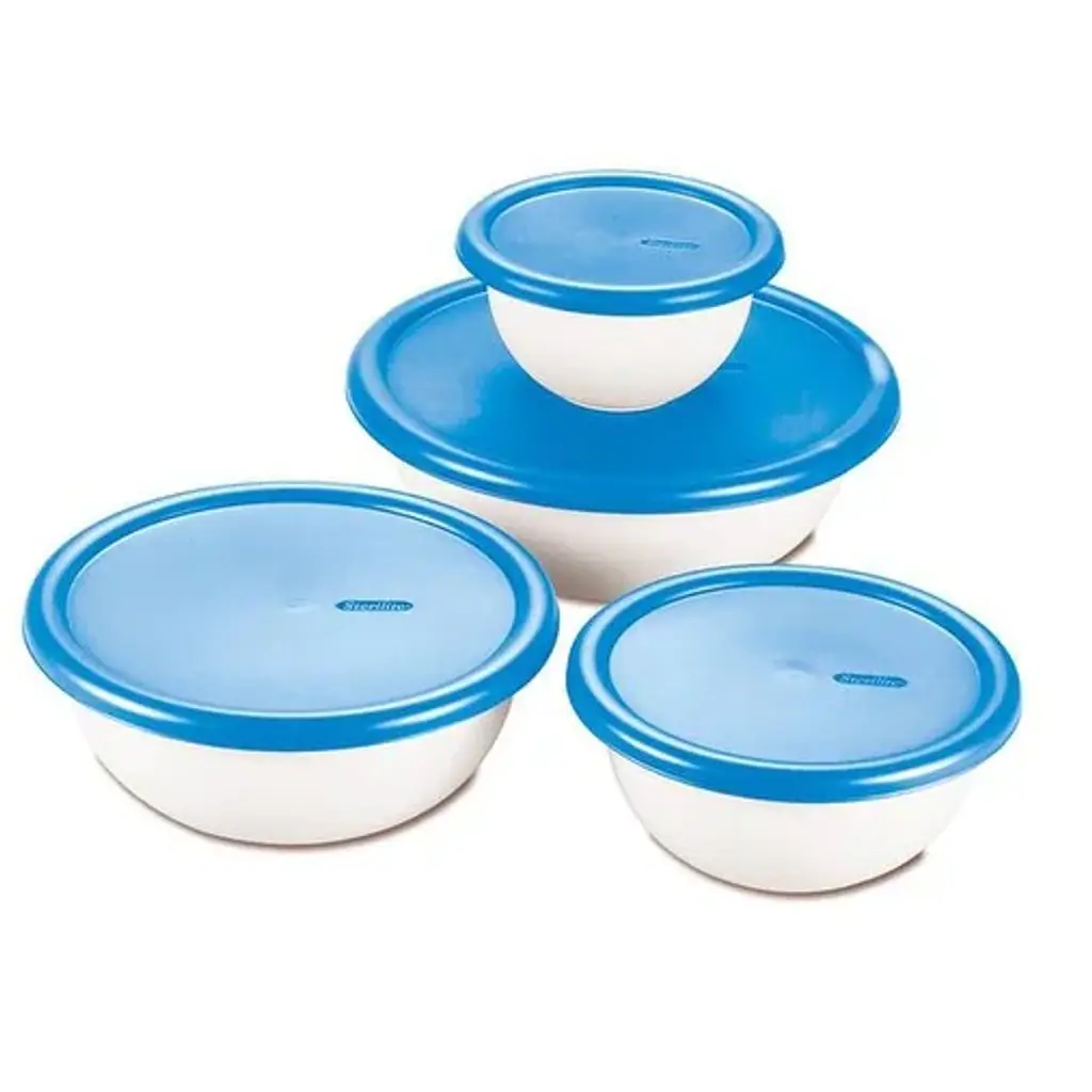 Take your favorite foods to-go with the 8 pack of Ultra-Seal 4.7-Quart Food Bowls from Sterilite. These food storage containers feature a gasket and include 4 latches built into the lids that create an airtight and watertight seal to ensure your food stays fresh while preventing liquids from leaking. These multipurpose ultra-seal food storage bowls stack securely when in use and maximize storage space efficiently when not in use. Whether you need to store leftovers, transport food from place to place, or want to serve small portions of salads, fruits, snacks, and desserts, these containers satisfy all your needs. These food storage bowls are freezer, microwave, and dishwasher safe for an easy clean and to ensure your stored foods remain fresh, safe, and healthy for you to enjoy at any time. With a stylish design, these bowls can go from the fridge straight to the table for parties or everyday serving. Enjoy your favorite foods more than ever with the 8 pack of Ultra-Seal Food Bowls from Sterilite. Safely store your favorite foods or transport meals from place to place with the ultra-seal food bowls Storage food bowls feature a gasket with 4 secure built-in latches to create an air-tight and water-tight seal Each container stacks neatly when full of food or fit inside one another for an ultimate storage solution Made with durable plastic that is freezer-safe, microwave-safe, and dishwasher-safe for an easy clean Medium-sized bowls hold up to 4.7-quarts of food and measure 10.25 inches in diameter and 4.75 inches tall Material: Plastic Color: Clear Dimensions (L x W x H): 10.25 x 10.25 x 4.75 inches Quantity: 8