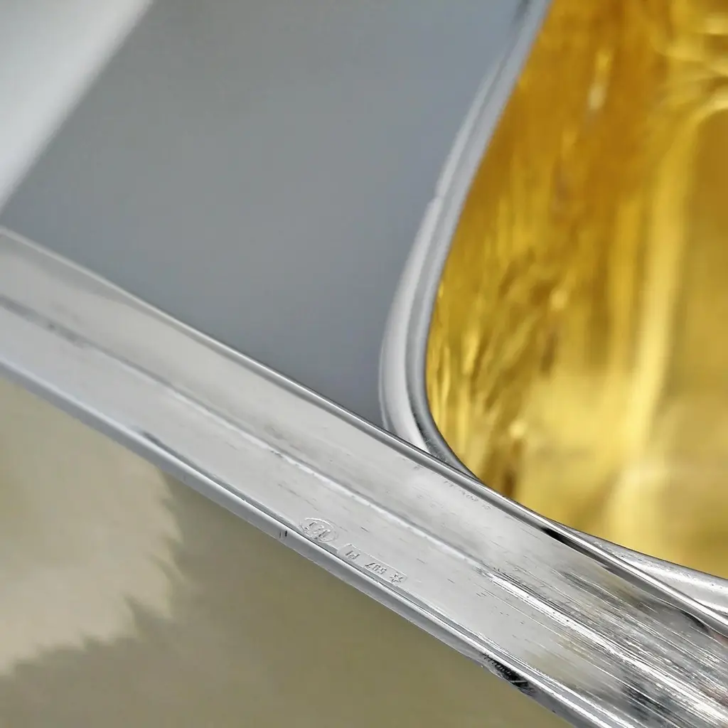 Sterling Silver Rectangular Biscuit Boxr With 24kt Gold Plated Interior