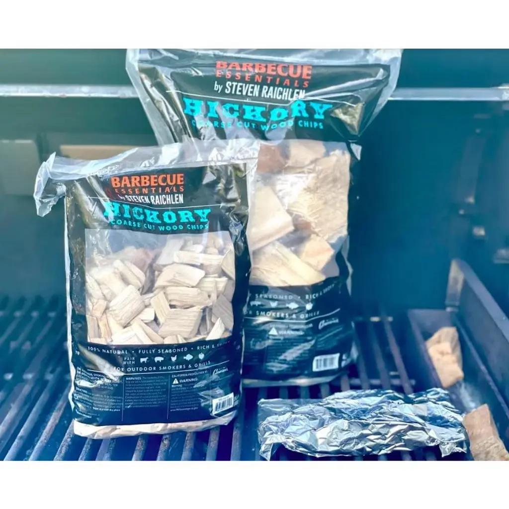 Enhance your smoker or grill with Steven Raichlen's Project Smoke Smoking Wood Chunks in Hickory. This 5-pound bag of kiln-dried BBQ chunks offers all-natural, large-cut chips that deliver robust hickory flavor to meats and dishes. Perfect for both beginners and experienced grillers, these chunks ensure a slow, consistent burn, promising delicious results that capture the essence of authentic barbecue every time.