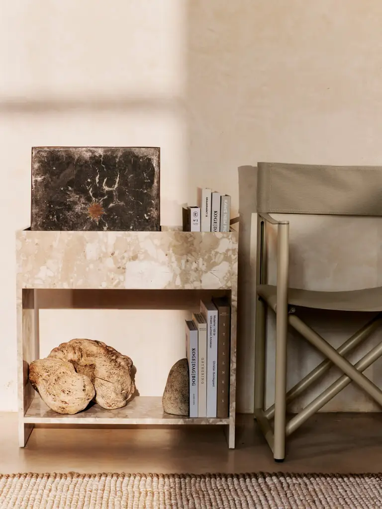 The Stone Plant Box with Shelf is a high-end upgrade to the classic plant box. Crafted from premium French cream stone in a soft sand color, this version offers a more refined, luxurious feel with enhanced durability. The addition of brass feet ensures perfect stability while elevating the overall design with a sophisticated, upscale touch. With its strong presence and elegant finish, the Stone Plant Box adds a refined and timeless element to any interior or outdoor space.