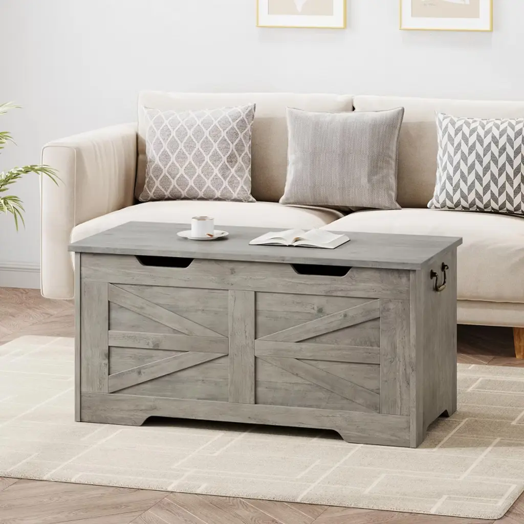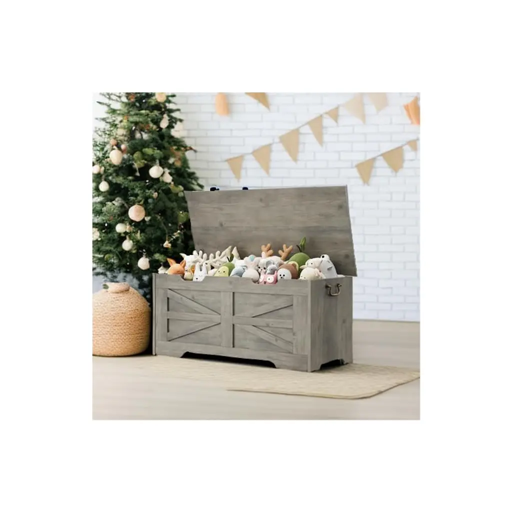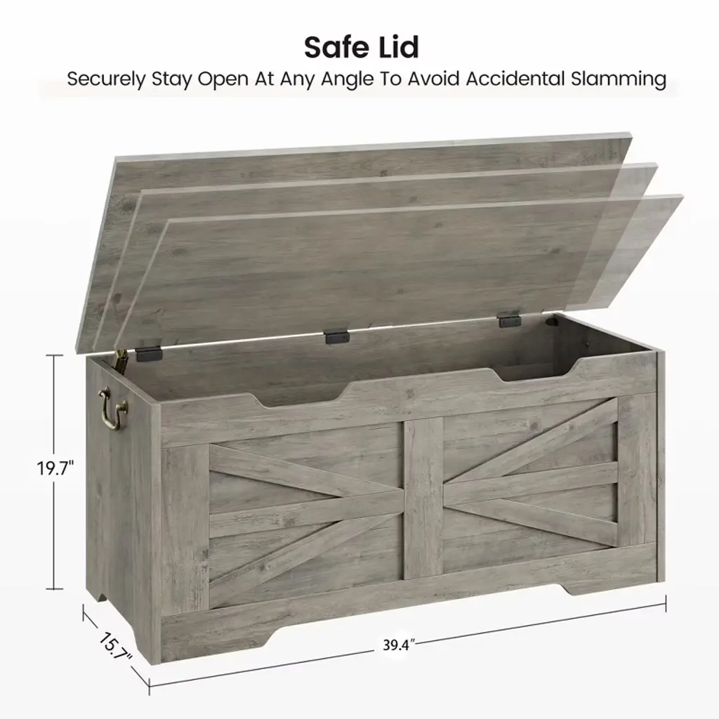 Keep your home tidy and stylish with this 39.4" storage chest. Designed with soft-close safety hinges, it prevents finger pinching and allows the lid to stay open at any angle—perfect for families with kids. With 2 side handles, it’s easy to move around. Offering ample space, this versatile chest doubles as a toy box, entryway bench, end-of-bed storage, or even a coffee table. Built from sturdy MDF with a 350 lb weight capacity, it’s durable and reliable. Finished in farmhouse white, it adds rustic charm while keeping clutter under control.
