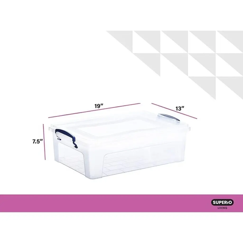 This product will make your life so much easier by being more transparent than most containers available. This allows you to see where you placed your things without opening all containers. Features: Customer can choose set includes: Two (2) Storage containers or Six (6)Storage containers This product will make your life so much easier by being more transparent than most containers available. This allows you to see where you placed your things without opening all containers. Here at Superior, we use the best high-quality materials to ensure our products will last for years in most tough environments. Our customer service group is always ready to assist you with any small complication or dissatisfaction. Contact us and we will accommodate whatever is needed. Space-saving: Its size makes it the perfect size for papers, crafts, baking accessories, and school supplies Heavy-duty protection: Avoid the cracking, splitting, and dents that plague most plastic bins and boxes. Our stackable designs distribute weight properly to avoid breaking and our superior plastic polymer is sturdier than most plastics without adding extra weight or bulky reinforcement points. Airtight snap lid: The sturdy blue contrast handles help you snap the lid into place for a tight seal that helps keep moisture and dirt out of your container which is particularly important for food items, wool clothing, and boxes stored outdoors. Clear organization: Our plastic organizing crates are more transparent than most containers on the market. That's awesome because it lets you easily stay organized without having to open your boxes or move them to check what's inside. This is especially helpful for toys, tools, food, and clothing. Made in Turkey Dimensions: Dimensions: 7.5 inches high x 19 inches wide x 13 inches deep This product will be shipped to you in one (1) box.