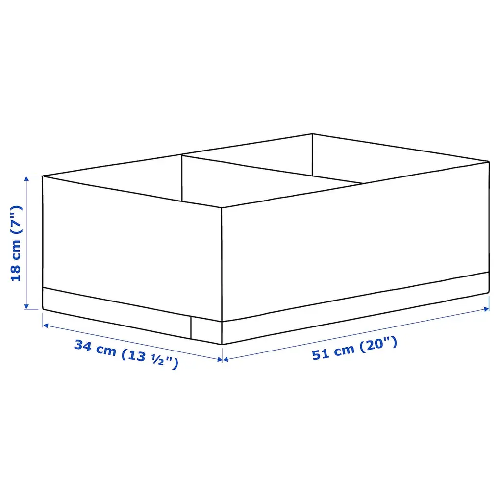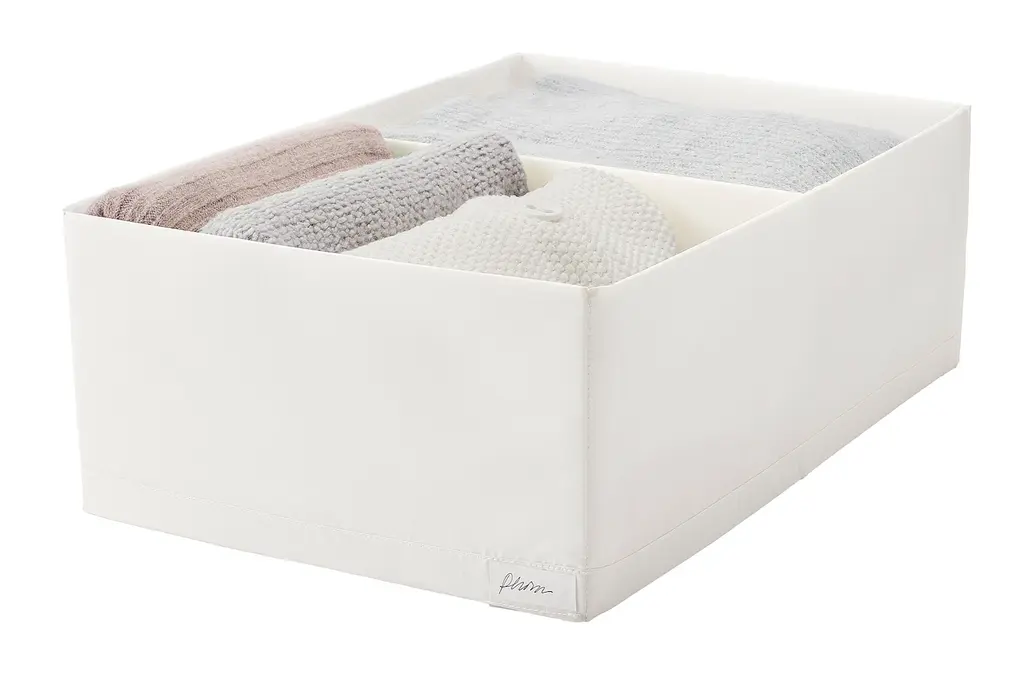 STUK Box with compartments - white 13 ½x20x7 ". Helps you to store and organize small things in your wardrobe or chest of drawers. The label holder helps you organize and find your things. This product is made of polyester, of which at least 90% is recycled. Fits PLATSA wardrobes.
