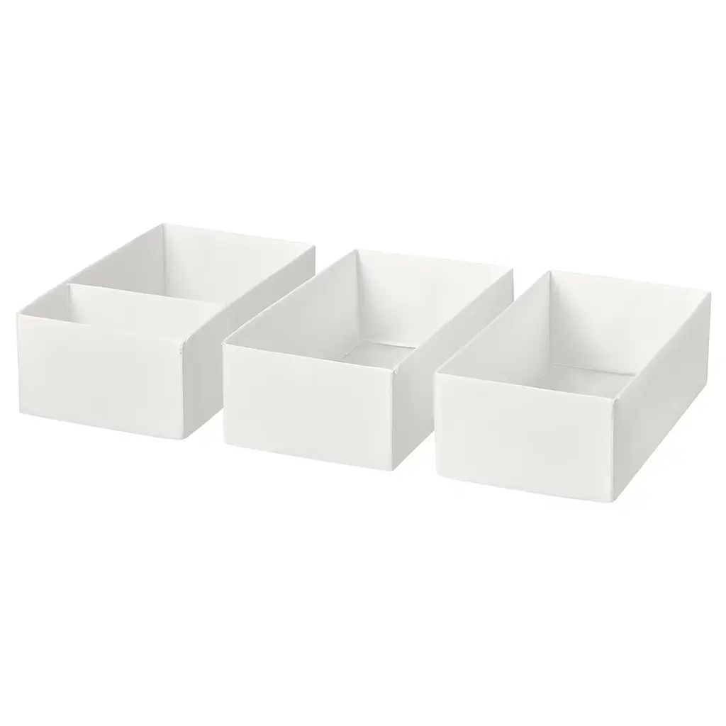 STUK Box with compartments - white 7 ¾x13 ½x4 ". Helps you to store and organize small things in your wardrobe or chest of drawers. The label holder helps you organize and find your things. This product is made of polyester, of which at least 90% is recycled. Fits PLATSA wardrobes.