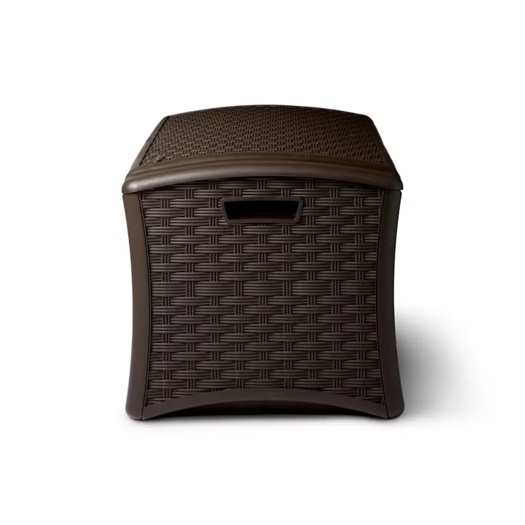Suncast 72 Gallon Resin Wicker Outdoor Patio Storage Deck Box, Brown (2 Pack)