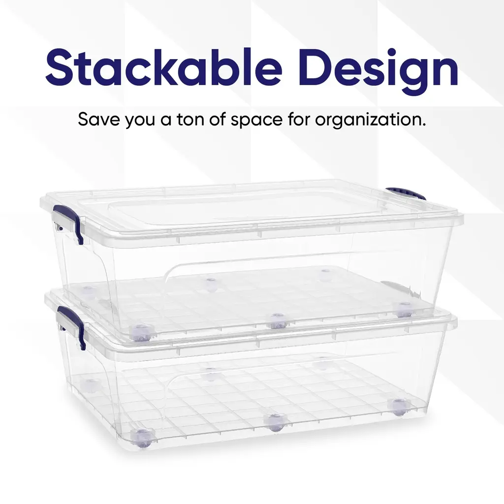 Superio 42 Qt Underbed Wheeled Storage Container - 42 Qt - 42 Qt - Clear - 1 Piece
