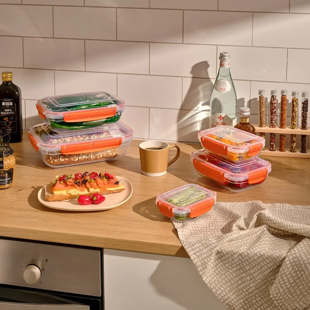Our highly durable and BPA-free food-grade plastic containers help food retain its taste and freshness. The boxes and lids are crystal clear allowing you to see what's inside. The containers stack perfectly and leave plenty of room in your fridge or freezer. Our food containers are made from heavy-duty plastic and can be put into your dishwasher, freezer, or microwave without risk. They are reusable and resist odors and stains. The rounded corners ensure less food waste and make it easy to clean. Whether you are preparing meals in advance, have some leftovers, or freezing your garden harvest- our leak-proof containers keep your food fresh and safe. Superio Food containers are made of BPA-free polypropylene plastic. It's clear like glass, yet more durable, light, and easy to carry. The material is stain-resistant and super easy to clean. It is dishwasher safe and resists odors. The containers stack perfectly to save space and keep your pantry and fridge organized. The lids feature latches and a silicone seal to prevent leaks and keep food fresh. Easy to use and care - Microwave safe (without lid), dishwasher safe, and freezer safe.
