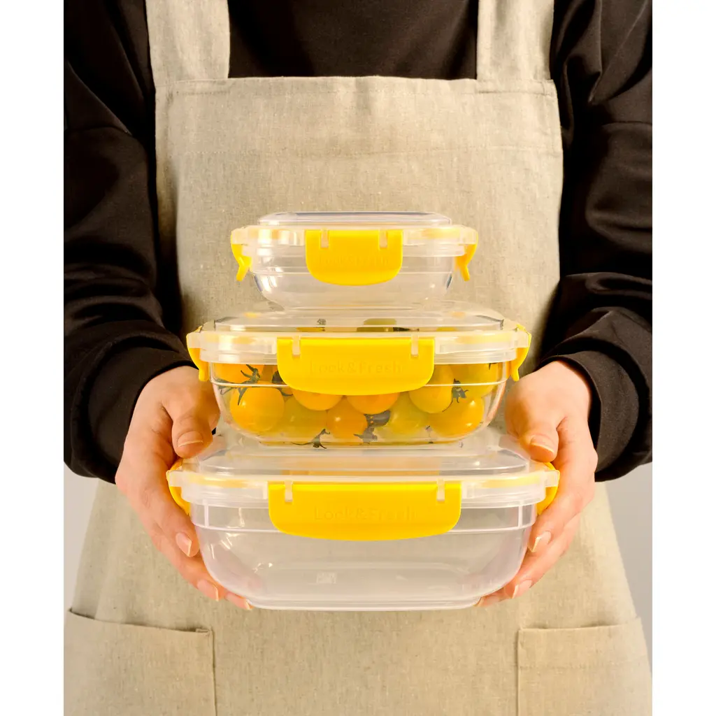Our highly durable and BPA-free food-grade plastic containers help food retain its taste and freshness. The boxes and lids are crystal clear allowing you to see what's inside. The containers stack perfectly and leave plenty of room in your fridge or freezer. Our food containers are made from heavy-duty plastic and can be put into your dishwasher, freezer, or microwave without risk. They are reusable and resist odors and stains. The rounded corners ensure less food waste and make it easy to clean. Whether you are preparing meals in advance, have some leftovers, or freezing your garden harvest- our leak-proof containers keep your food fresh and safe. Superio Food containers are made of BPA-free polypropylene plastic. It's clear like glass, yet more durable, light, and easy to carry. The material is stain-resistant and super easy to clean. It is dishwasher safe and resists odors. The containers stack perfectly to save space and keep your pantry and fridge organized. The lids feature latches and a silicone seal to prevent leaks and keep food fresh. Easy to use and care - Microwave safe (without lid), dishwasher safe, and freezer safe.