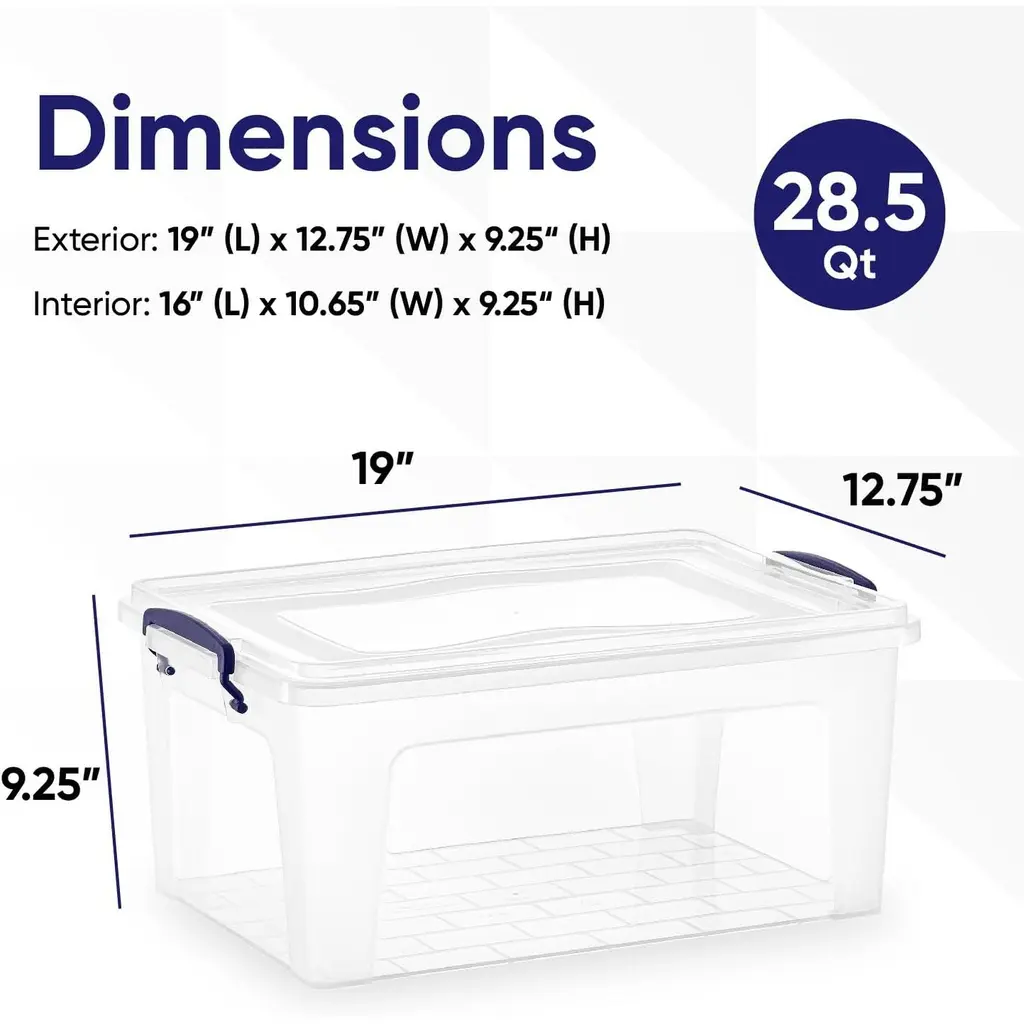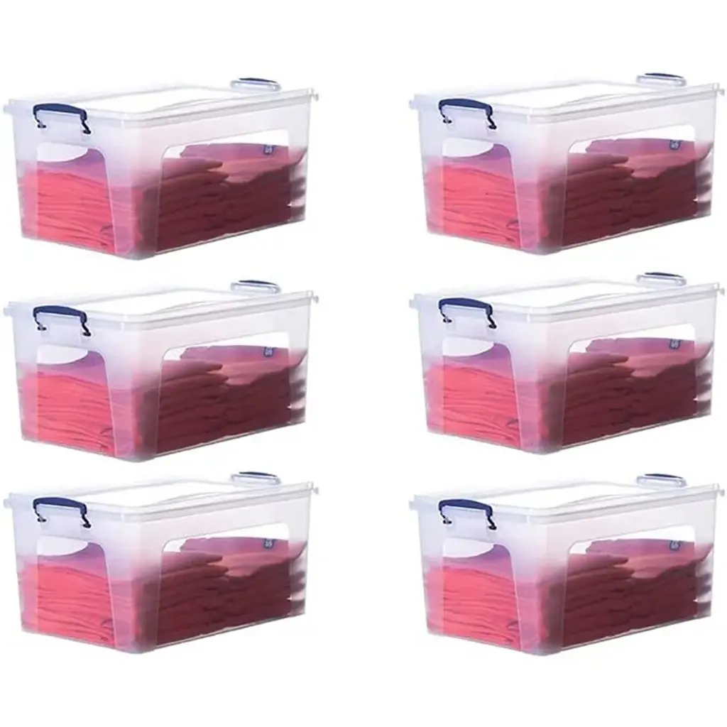 Superio Clear Stackable Storage Container With Lid, 28.5 Qt (6 Pack) - 9"h X 19"w X 12.5"d - 9"h X 19"w X 12.5"d - Clear - 6 Piece