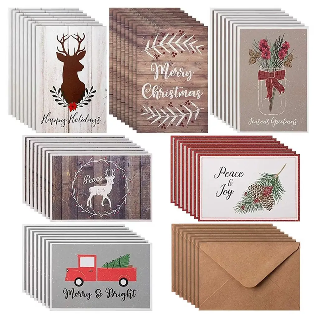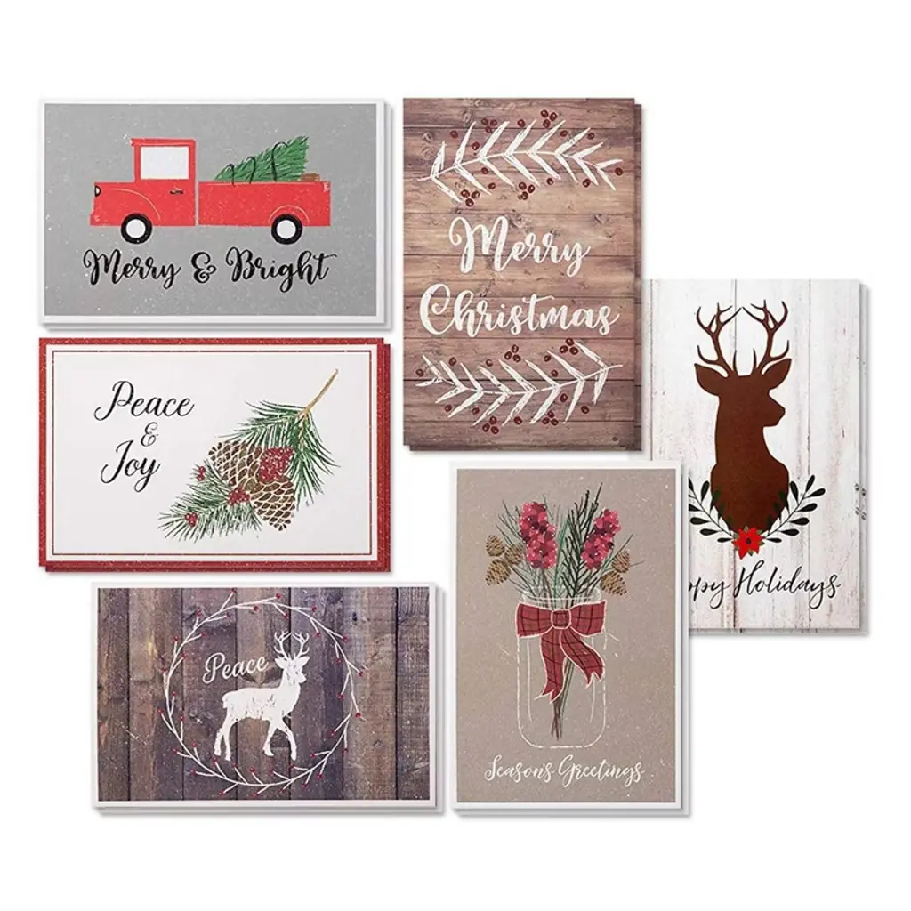 Make this holiday season memorable with this set of 48 assorted Christmas cards. Featuring six unique designs with warm greetings like “Merry Christmas,” “Peace and Joy,” and “Happy Holidays,” these cute Christmas cards are perfect for spreading cheer to friends, family, and coworkers. Each blank Christmas card measures 4 x 6 inches, giving you plenty of space to write heartfelt, personalized messages. Whether you’re sending a thoughtful happy holidays card or a fun Xmas card, these cards are designed to fit every occasion. This pack of Christmas cards includes matching envelopes, making it easy to send your holiday greetings. Ideal for all ages, these Christmas cards for kids and adults bring a festive touch to your handwritten notes. Crafted from high-quality materials, this Christmas card pack is sturdy and durable, ensuring your messages arrive in style. Whether for personal or professional use, these seasons greetings cards with envelopes are a delightful way to share the magic of the holidays. Spread joy, love, and kindness this season with these charming and versatile cards!