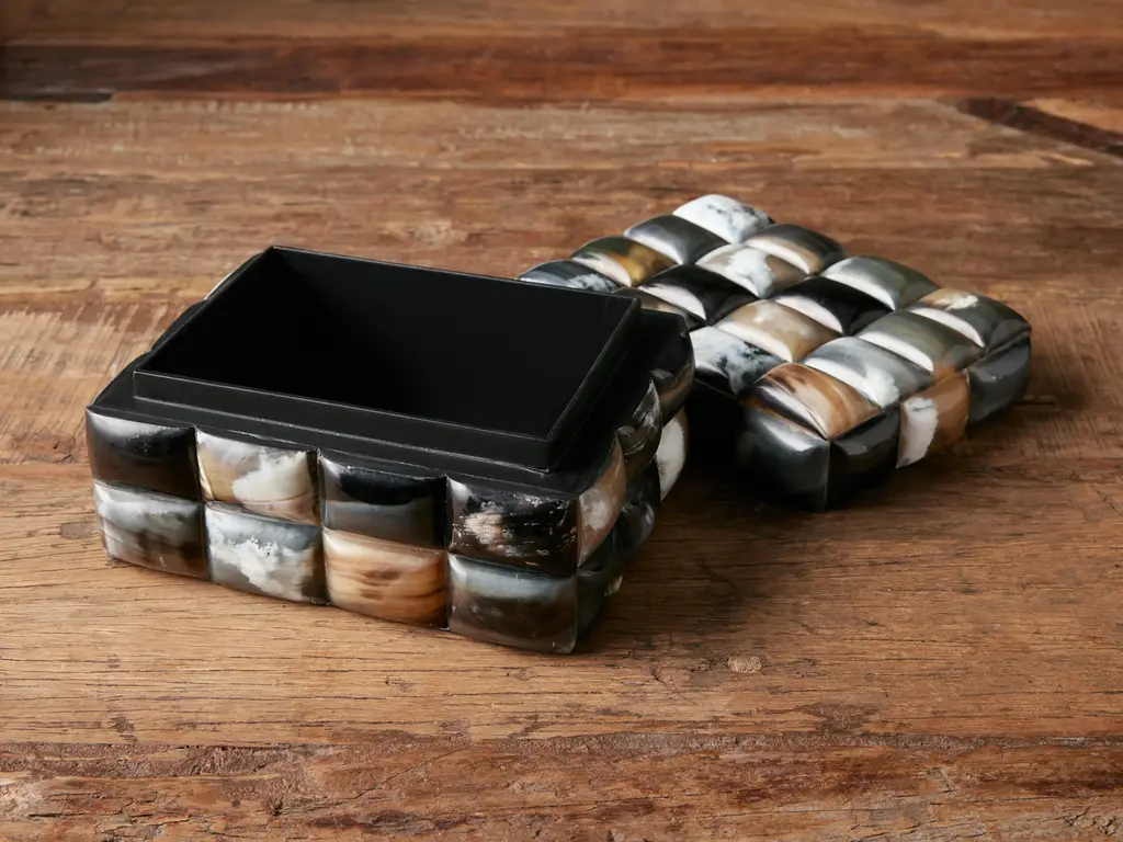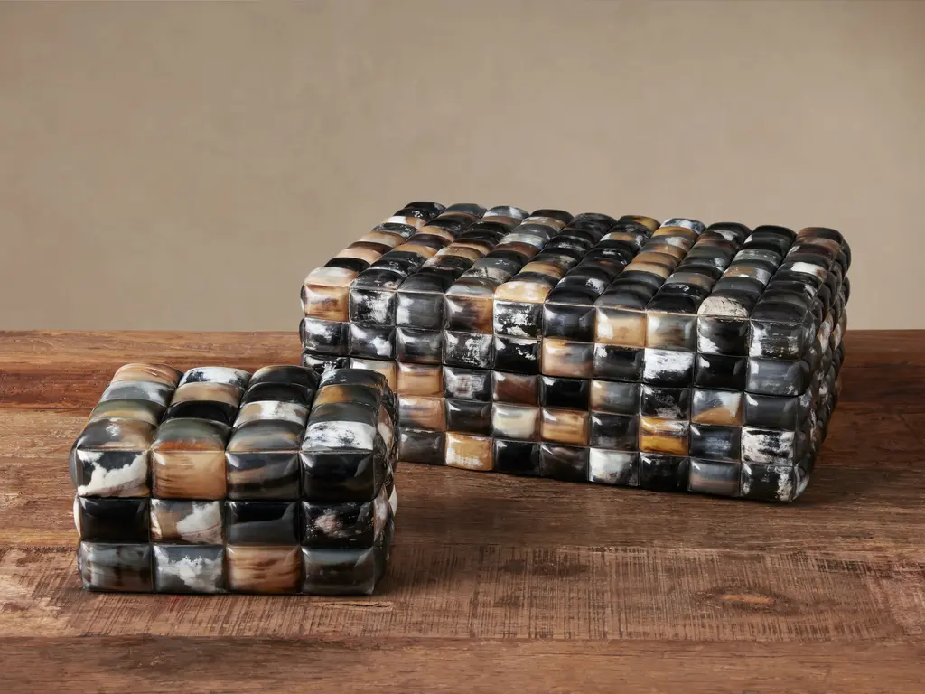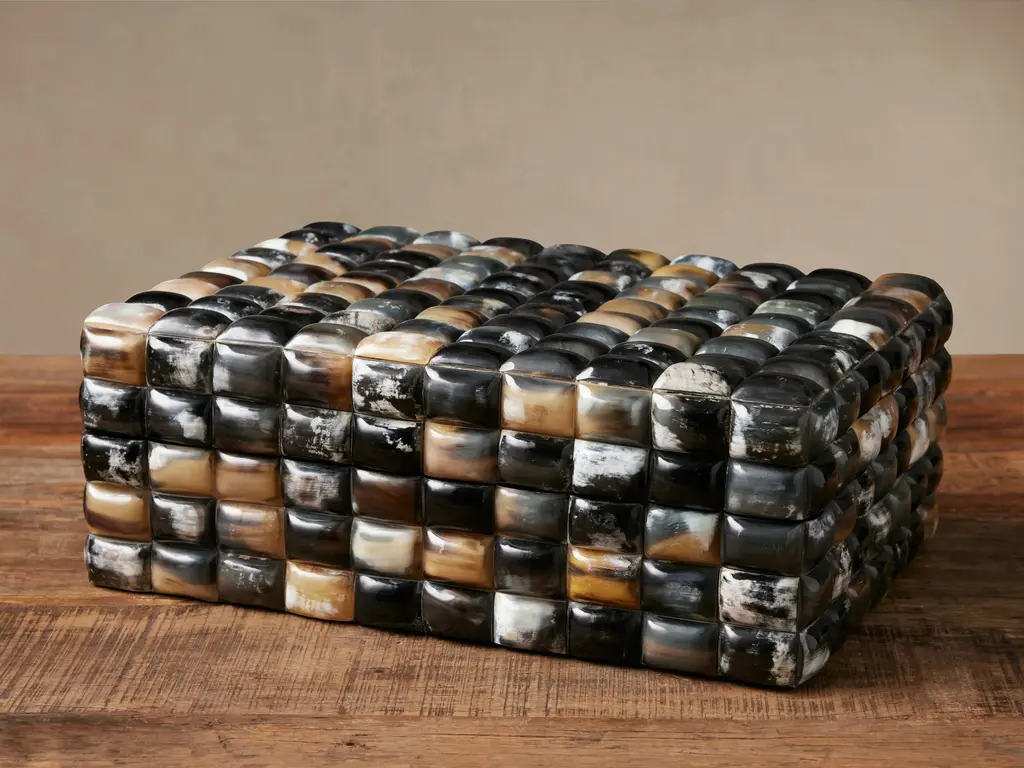 Crafted by our artisan partners in India, our Tabor Horn Collection is made from the horns of water buffalo, a distinct and alluring by-product from other industries. Tiles of the horn, that would otherwise be discarded, are meticulously arranged by hand to create a stunning statement piece.