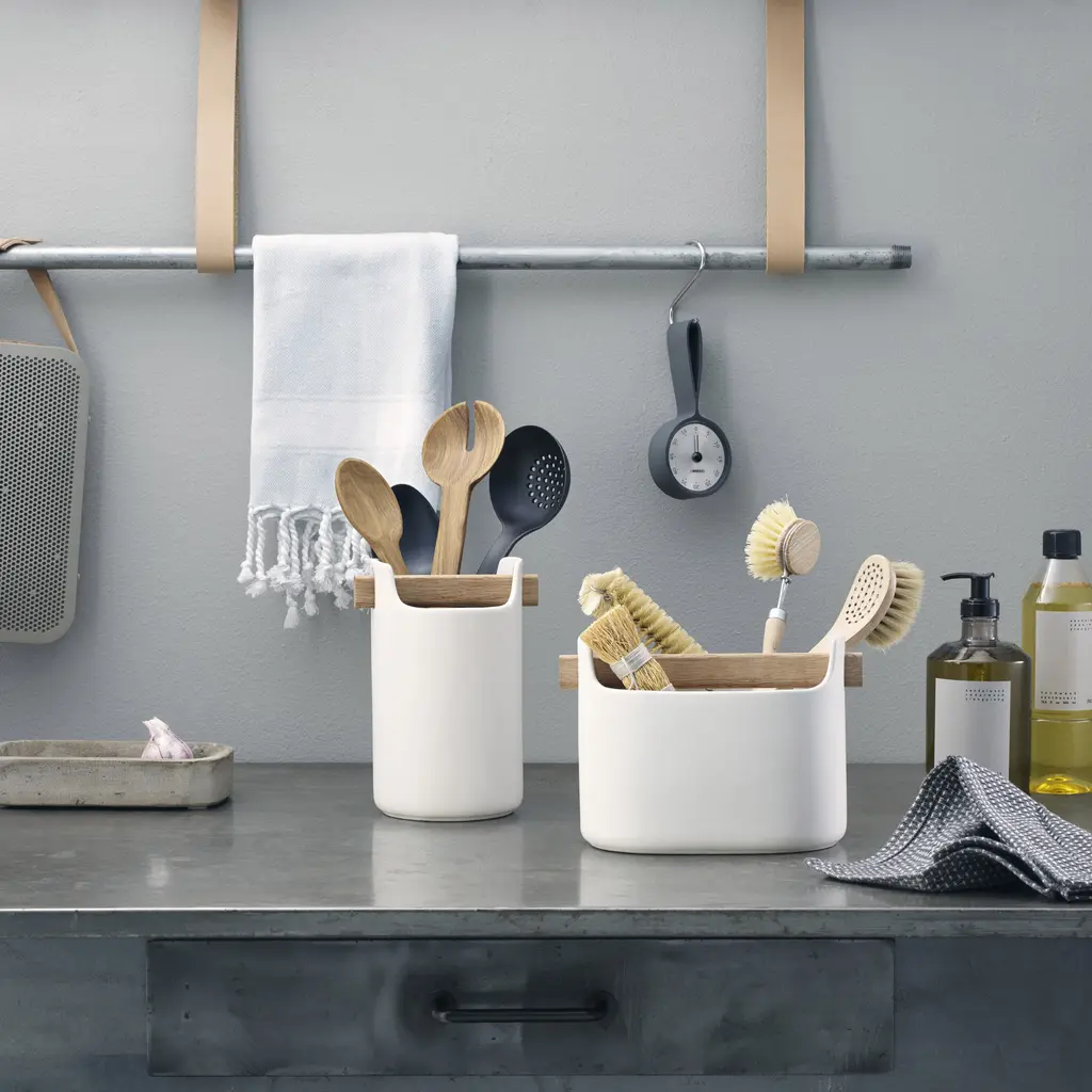 With the Toolbox organiser, it’s easy to keep your kitchen worktop or your desk tidy and free from unsightly mess. The Toolbox has a wooden handle, doubling as a divider for organising e.g. washing-up utensils. Ideal for organising kitchen utensils, washing-up brushes, dishcloths, scouring pads or pencils, scissors and rulers.
