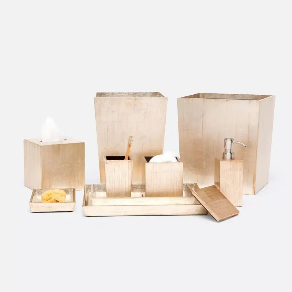 Natural-looking silver leaf stripes provide the metallic sheen of our Tanlay. An aged background softens the collection’s lacquered look, creating pieces that are as versatile as they are understatedly elegant. The designers at Pigeon & Poodle believe the details of a home are just as important as the furniture. A gorgeous toothbrush holder or handcrafted canister can elevate an entire bath, the perfect frame can heighten the feel of a whole space, and a good-looking storage basket can be your look’s missing link. With thoughtful design and top-notch craftsmanship, Pigeon & Poodle create home accessories with the care and attention typically reserved for larger pieces of décor.
