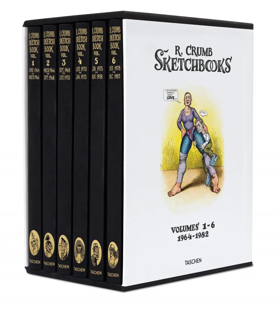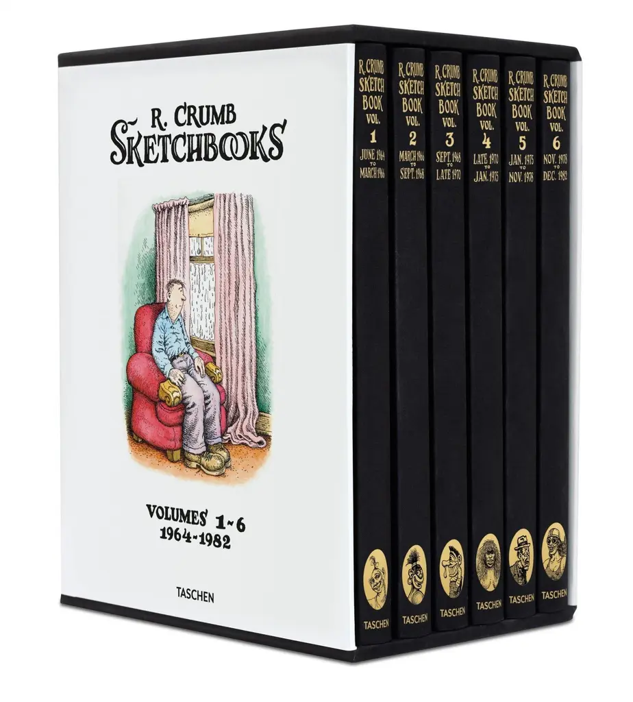 Taschen Books Robert Crumb "Sketchbooks 1964-1982" 6-Volume Boxed Set And Signed Print, Limited Art Edition, 7 Pieces