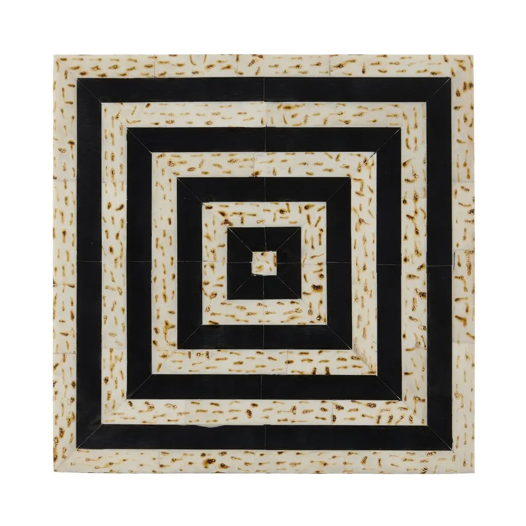 The Taurus Box Set has a number of artisanal aspects to its design and construction. One of which is how the handmade ivory and black decorative boxes have mitered corners that follow the line telescoping from their tops to their bottoms. Once the bone and composite materials have been fitted together in tidy lines, texture is achieved on the surface when artisans mark the white speckled bone with a brazing tool. This level of specificity and the fact that the boxes are composed like intricate puzzles illustrate Aimee Kurzner's ability to bring complexity to artisanal accessories. Ships In 7-10 Business Days This image is for illustrative purposes only. The colors shown are accurate within the constraints of lighting, photography, and the color accuracy of your screen.