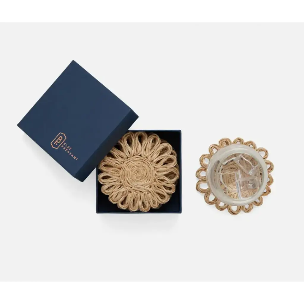 Teigan Natural, Floral Coasters, Abaca, Boxed Set Of 4