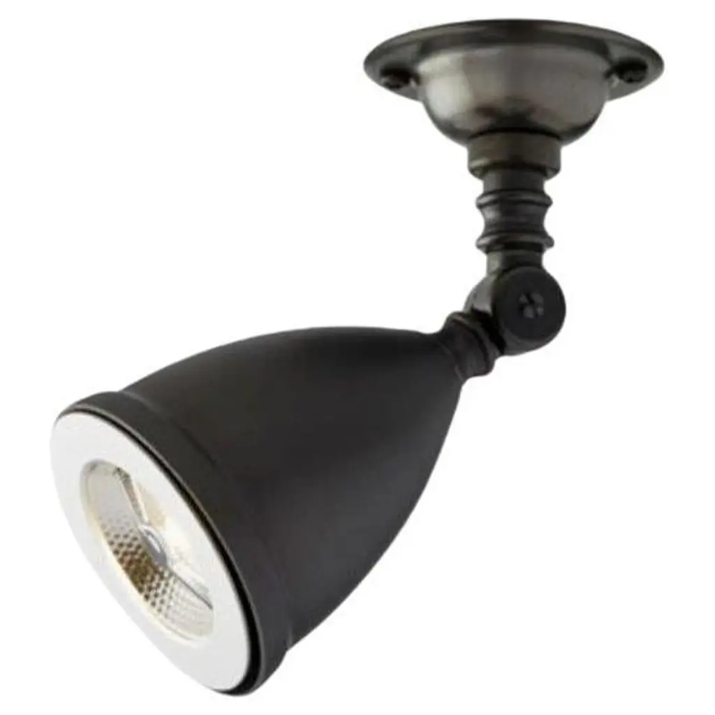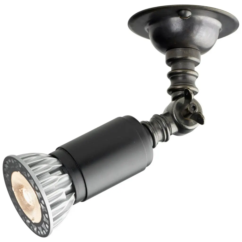 Spot light with lampshade in dark bronze, polished chrome, brushed nickel or polished nickel, 350° turnable, 90° adjustable, with lamp holder 12V B15d, transformer box, dimmable driver and lamp LED AR70 B15d 7W 3000K 40° CRI 80. For indoor use only (IP20).Main power 230V 50Hz.