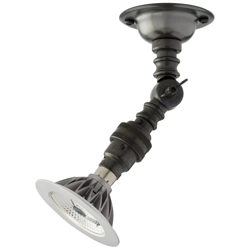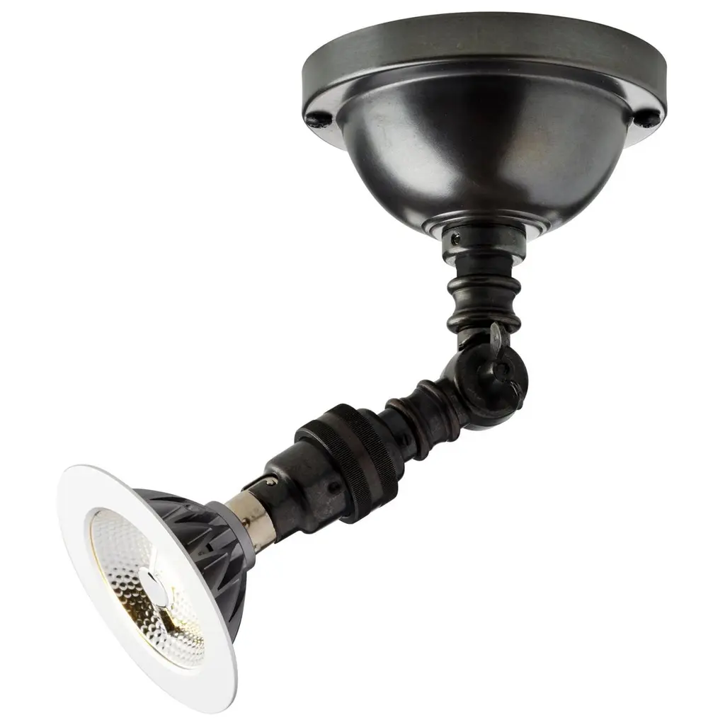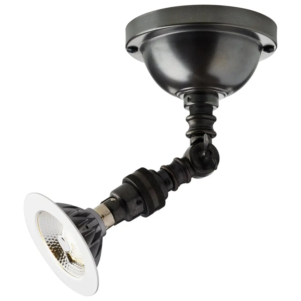 Spot light in brushed nickel, 350° turnable, 90° adjustable, with lamp holder 12V B15d, transformer box with dimmable driver and lamp LED AR70 B15d 7W 3000K 40° CRI 80. For indoor use only (IP20). Bulbs not included but can be sourced from Just Bulbs in NYC.Main power 230V 50Hz.Please note the brushed nickel finish shown in the second image of this listing. Slight variations might occur, which we are not held responsible for.