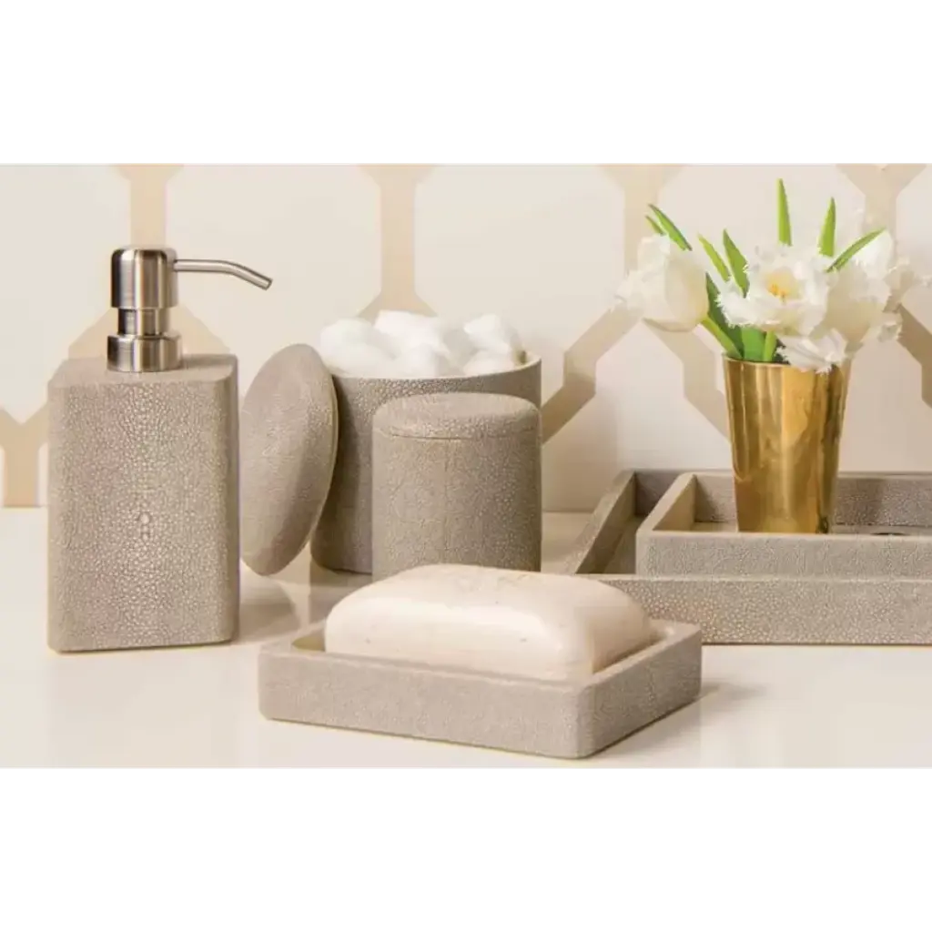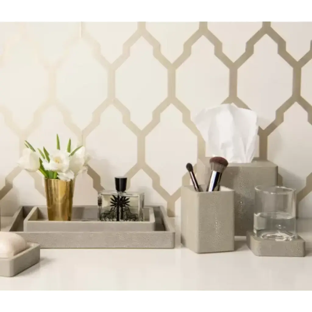 Stunning bath collection in our signature faux shagreen with an elevated rounded corner detail. Appropriate for the most discriminating bathrooms. The designers at Pigeon & Poodle believe the details of a home are just as important as the furniture. A gorgeous toothbrush holder or handcrafted canister can elevate an entire bath, the perfect frame can heighten the feel of a whole space, and a good-looking storage basket can be your look’s missing link. With thoughtful design and top-notch craftsmanship, Pigeon & Poodle create home accessories with the care and attention typically reserved for larger pieces of décor.