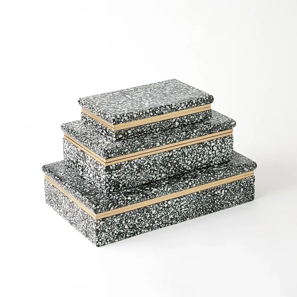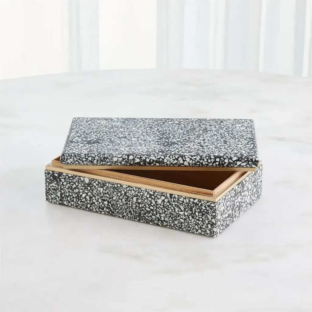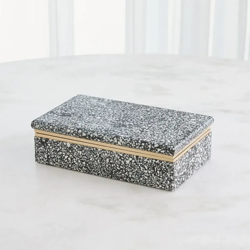 Elevate your space with the modern sophistication of our Terrazzo Boxes. Meticulously handcrafted from resin with stylish brass accents, these boxes seamlessly blend functionality as storage solutions and eye-catching decor pieces. From a fashion forward perspective, Global Views offers accessories, furniture, statement lighting, and an assortment of rugs and mirrors to add beauty and joy to your home.